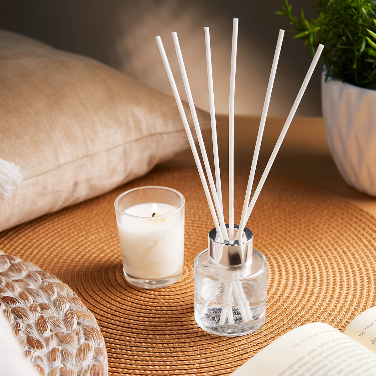 SET DE HOGAR ALICE - Crea un ambiente de serenidad y bienestar en tu hogar este set de vela y esencia. Incluye una vela aromatizante que llena cualquier espacio con una fragancia envolvente, y una esencia ambiental con 6 varillas que dispersan un aroma sutil y duradero a lo largo del día. Ambos con aroma a vainilla. Incluye caja de regalo ecológica.
