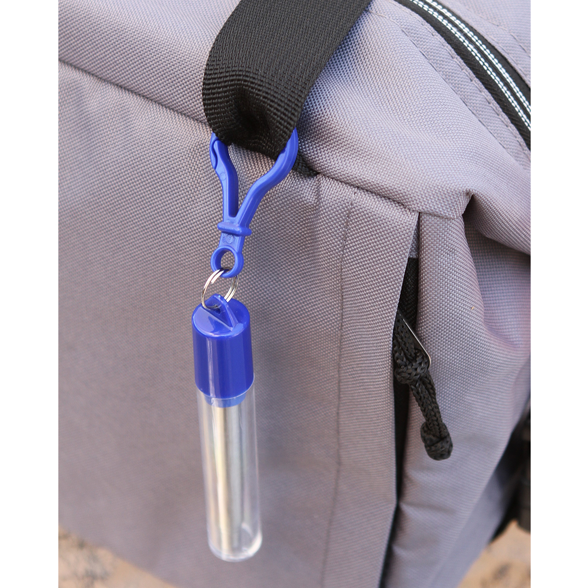 Popote metálico. - Popote retráctil reutilizable de acero inoxidable, contiene cepillo para fácil limpieza y practico estuche de acrílico con arnés para llevarlo a todas partes, se puede grabar en el popote y cuenta con un área amplia para impresión en el estuche. Son ideales para viajar y responsables con el medio ambiente.