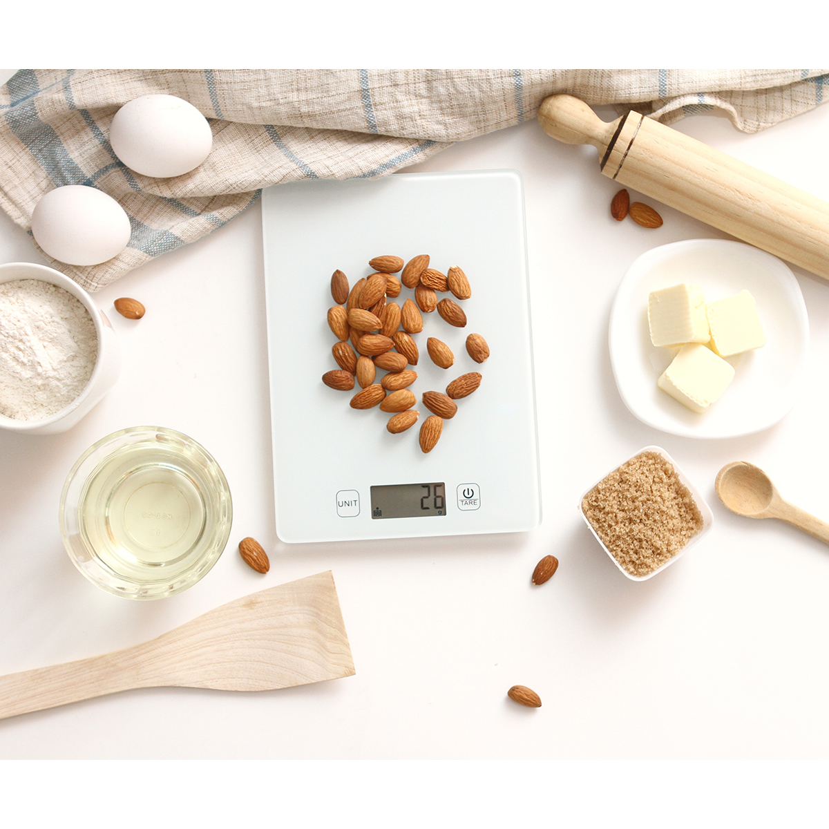 Báscula Scorno. - Báscula electrónica de uso doméstico para alimentos, con diseño tecnológico de alta precisión. Vidrio templado de 3mm. Capacidad 5Kg u 11 libras.