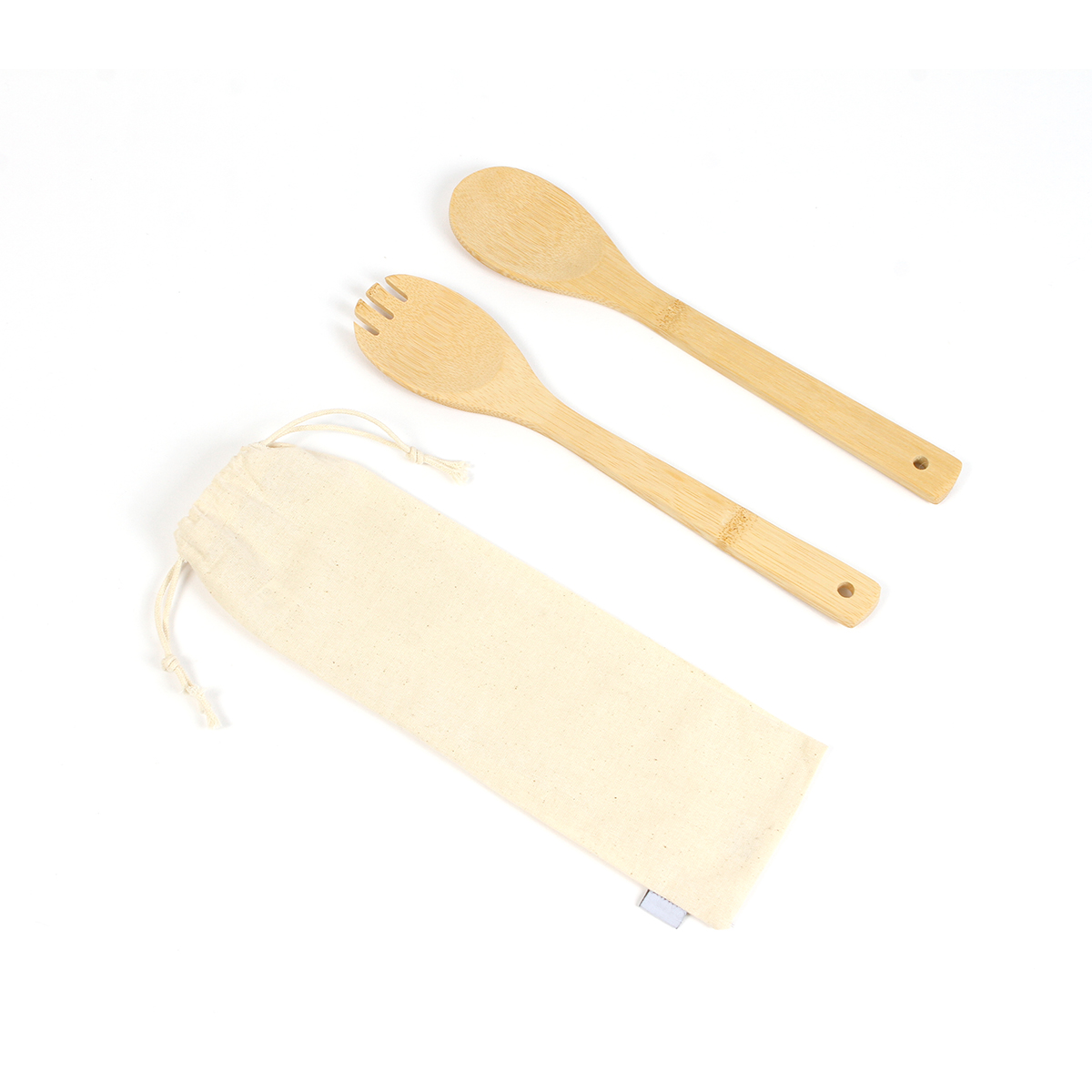 Set Holbak. - Set de cubiertos para ensalada fabricado en madera de bambú barnizada. Incluye cuchara y tenedor, con perforación para colgar. Cuenta con estuche con correa ajustable para cerrar.