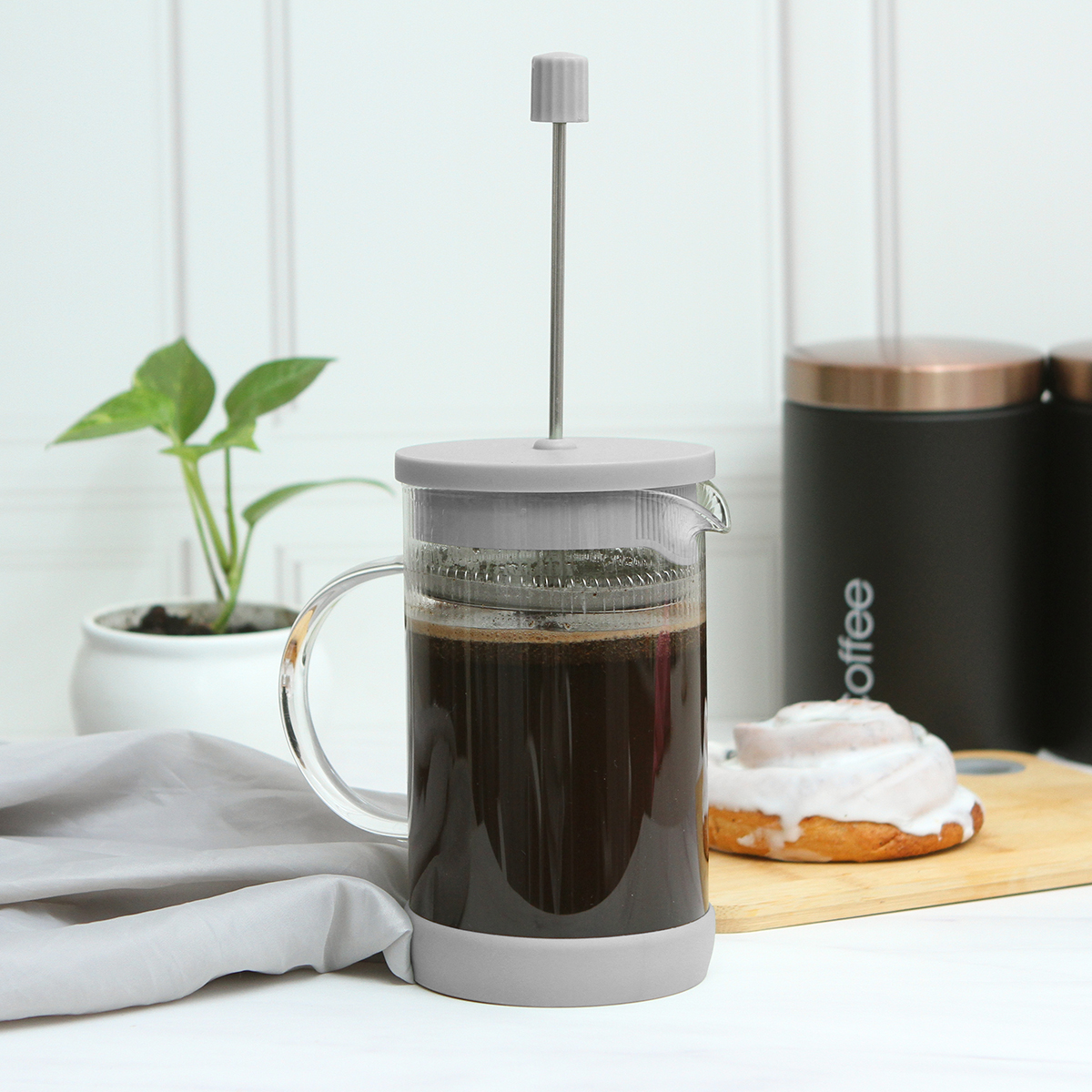 Prensa francesa Tux. - Prensa francesa de 800 ml, cuerpo fabricado en vidrio de borosilicato y acero inoxidable con tapa fabricada en polipropileno. La parte de abajo está fabricada en plástico tipo TPR  característico por su flexibilidad, durabilidad, además, es removible para fácil limpieza.