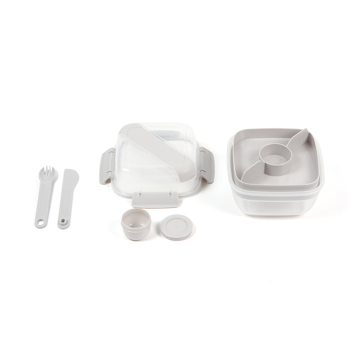 Contenedor Bauen. - Contenedor de alimentos hermético fabricado en polipropileno y silicón. Es resistente e ideal para mantener tus comidas frescas y seguras. Con diseño compacto y práctico, es perfecto para llevar al trabajo o escuela. Incluye una cuchara, un tenedor, un cuchillo, un contenedor de alimentos con tapa con divisores y un contenedor pequeño tipo salsero.