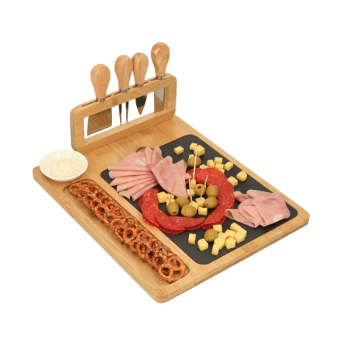 GOUDA Tabla para quesos con piedra, incluye 1 mini cuchillo de pala, 1 mini tenedor para quesos, 1 cuchillo de avión estrecho, un cuchillo y un mini plato de cerámica.