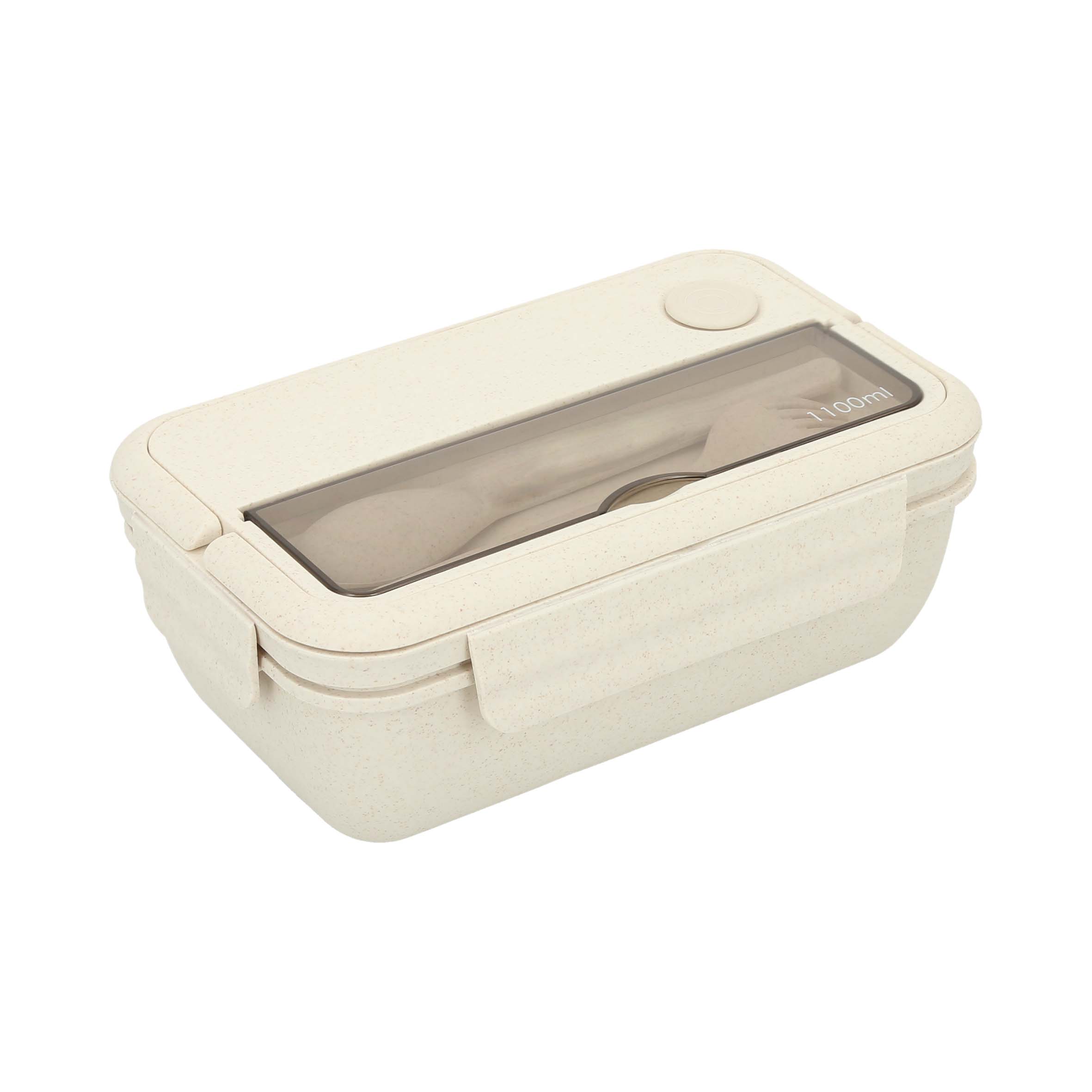 MAKI Contenedor para alimento de wheat Straw (fibra de trigo), con 2 compartimentos para alimentos,1 para cubiertos en la parte superior y soporte para celular. Incluye cuchara y tenedor.