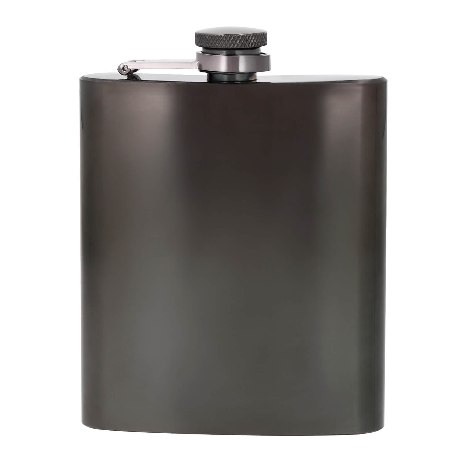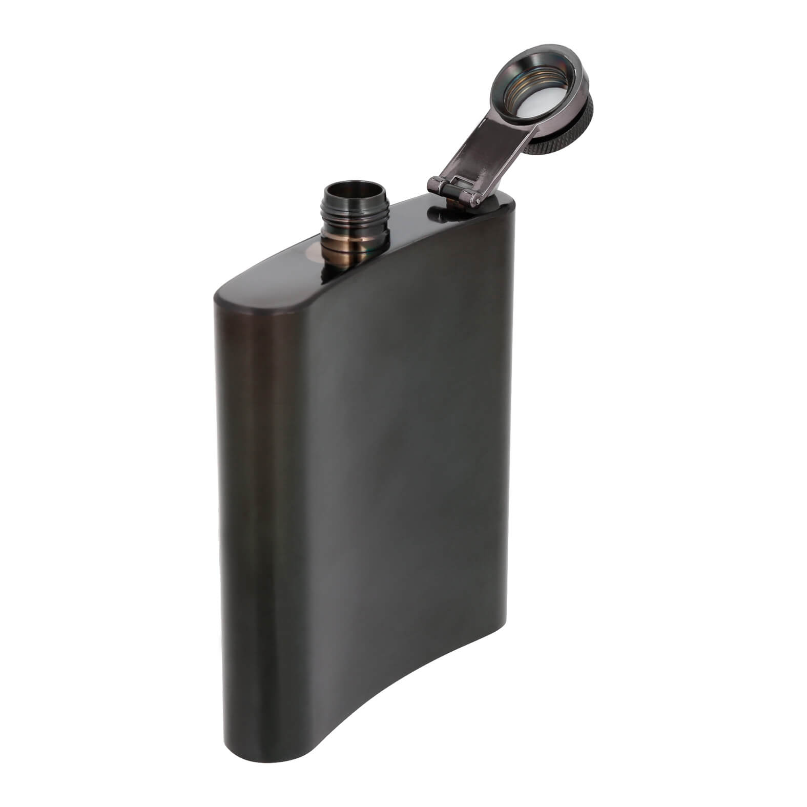 DUKE Licorera de 7 oz. con acabado espejo y tapa enroscable sujeta al cuerpo.