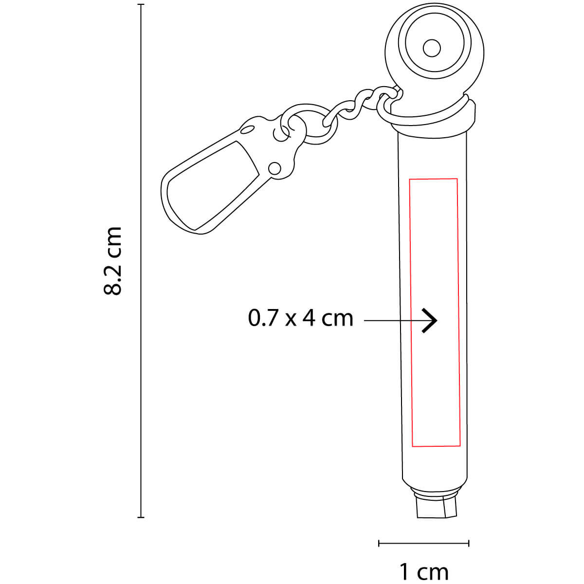 MATERIAL: Plástico MEDIDAS: 1 x 8.2 cm IMPRESION: Serigrafía / Tampografía MED. EMPAQUE: 52 x 32 x 39 cm PESO EMPAQUE: 128 Kg PIEZAS EMPAQUE: 1000