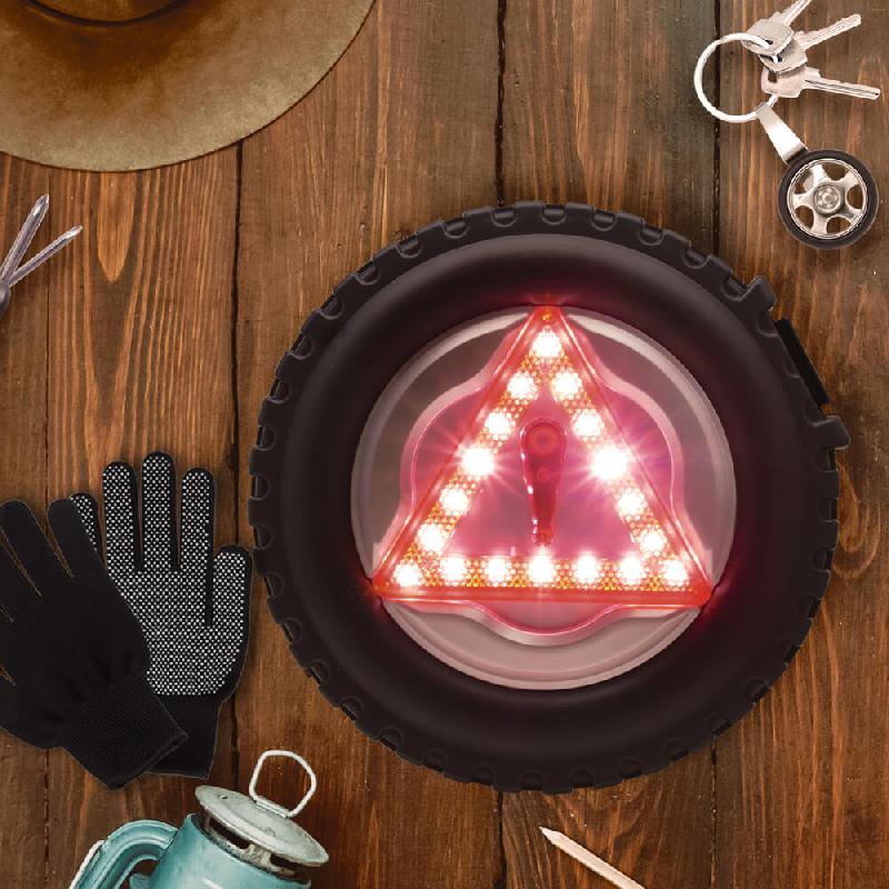 Set de herramientas en forma de llanta que contiene: Alicate, Mango de desarmador, Vástago o caña de desarmador, Medidas: 25 x 11 cm Material: Plástico y accesorios metálicos.
