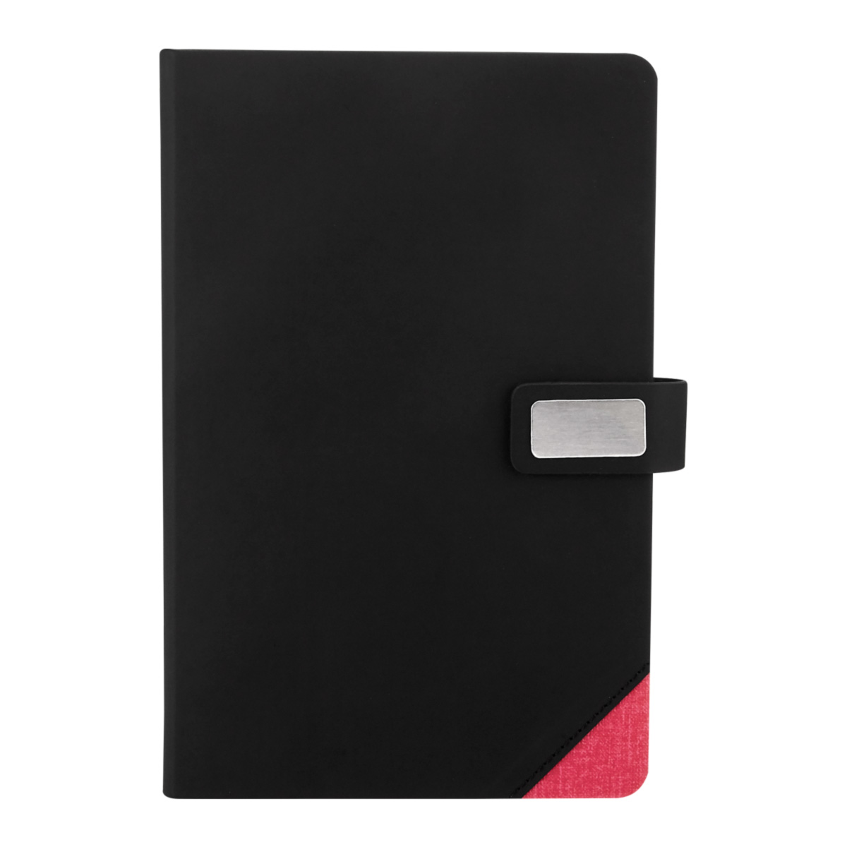 LIBRETA BORYSPIL - Libreta con 80 hojas de raya. Incluye elástico para bolígrafo, broche imantado para cerrar y placa para grabado.