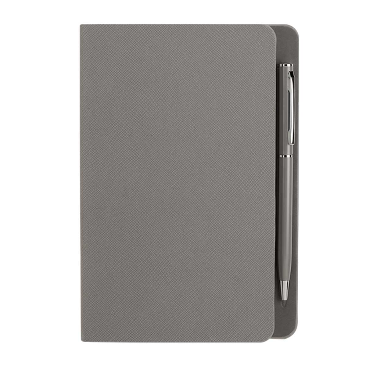 MERINA Set de libreta y bolígrafo metálico con acabado rubber. Libreta con car...