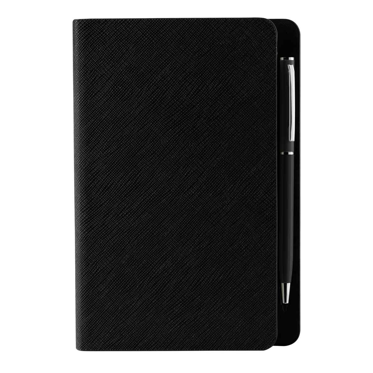 LIBRETA FUNEE - Libreta con 80 hojas de raya. Contracubierta con espacio imantado para bolígrafo. Incluye bolígrafo metálico.