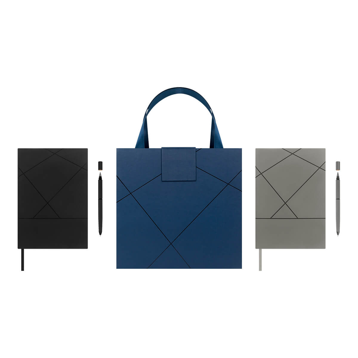 MATERIAL: Curpiel / Metal / Cartón MEDIDAS: 14.5 X 21 cm Libreta /1 x 14.5 cm Bolígrafo / 22.5 x 21.5 x 4.5 Caja IMPRESION: Termograbado / Láser / Serigrafía MED. EMPAQUE: 53 x 24 x 47 cm PESO EMPAQUE: 2.8 Kg PIEZAS EMPAQUE: 20