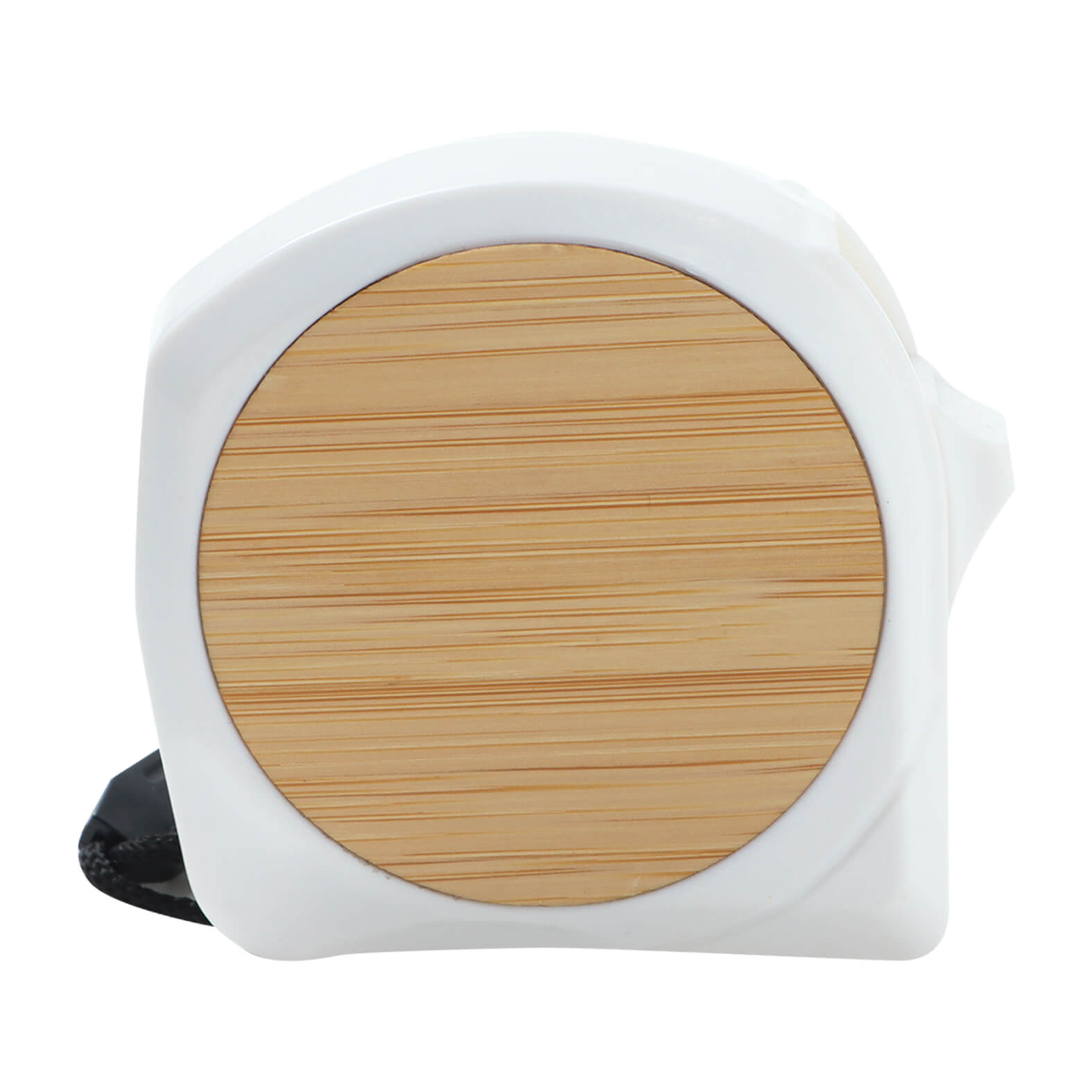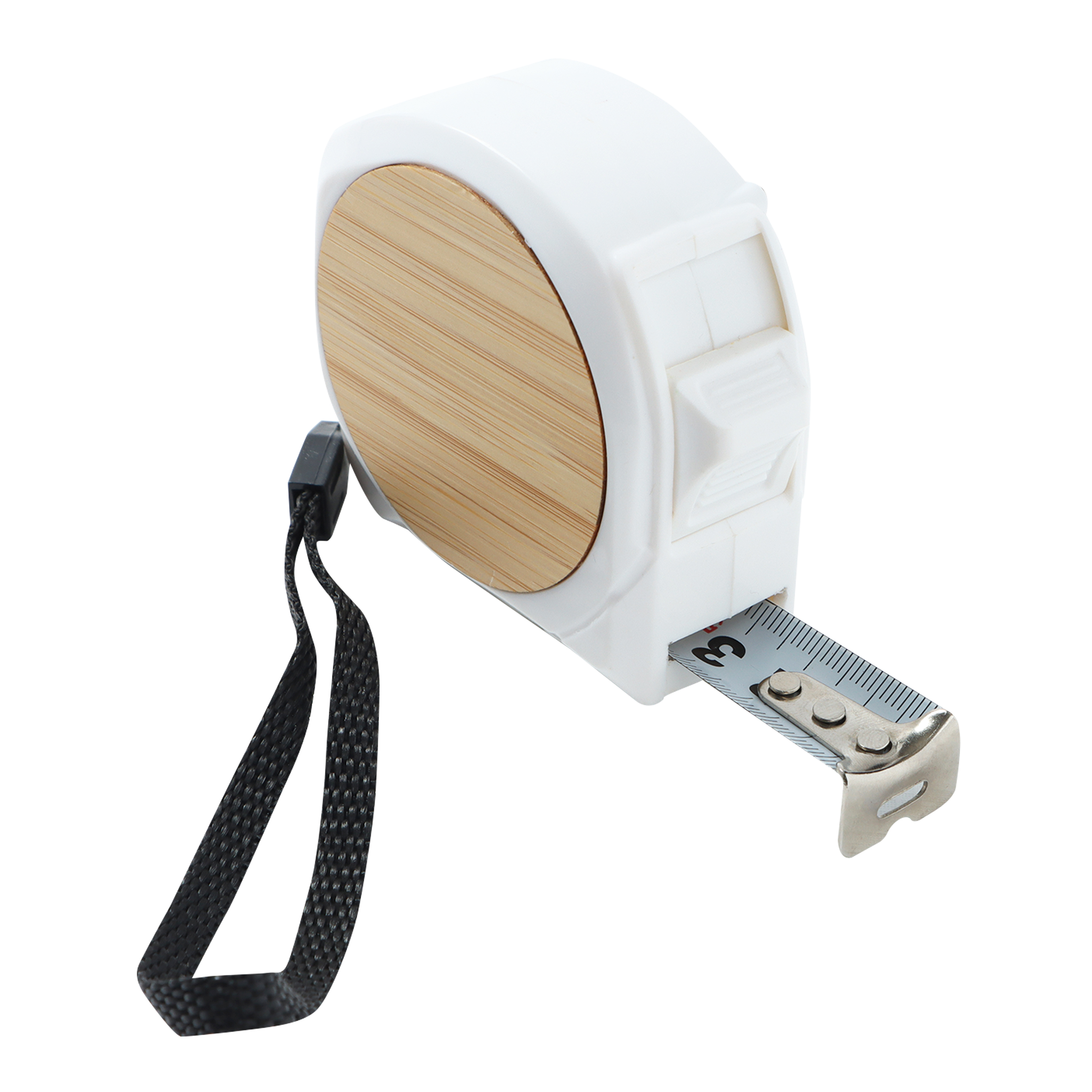 FITA Flexómetro con detalle en bambú y cinta metálica de 5 m. Incluye correa y seguro.