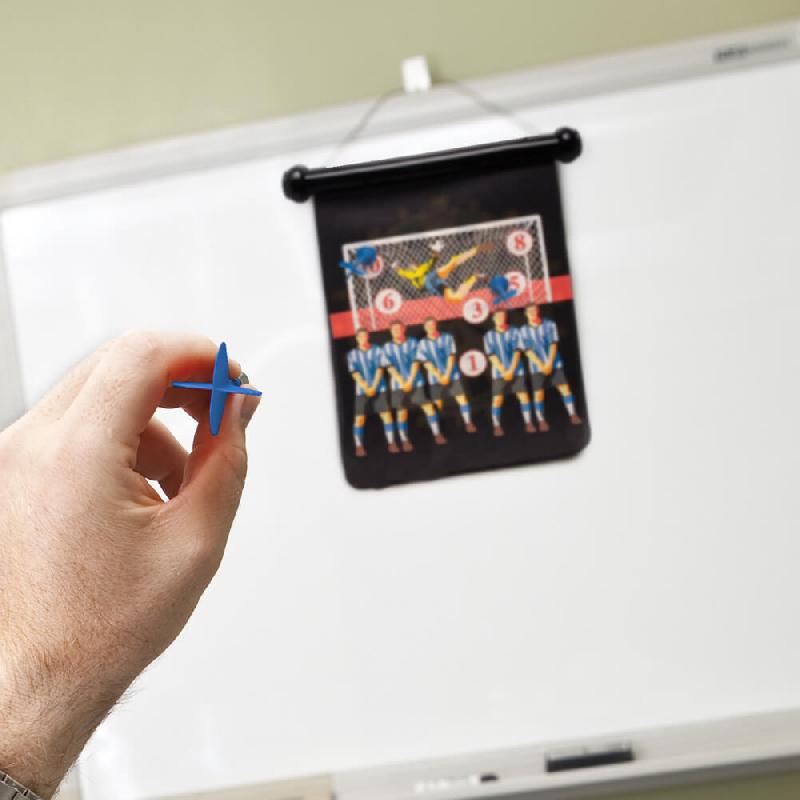 Juego de dardos tema soccer. Medidas: 33.5cm x 24.5 cm Material: Plástico. Empaque: Caja de cartón.