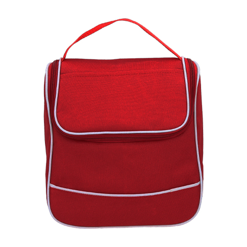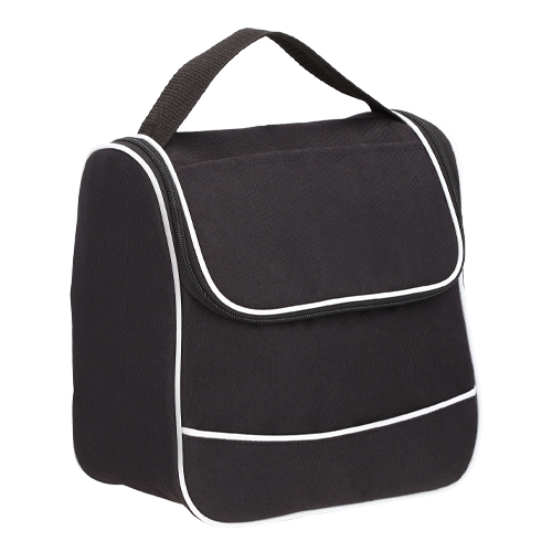 SNACK Lonchera de poliéster con interior impermeable plastificado, cierre, asa y un compartimento externo al frente.