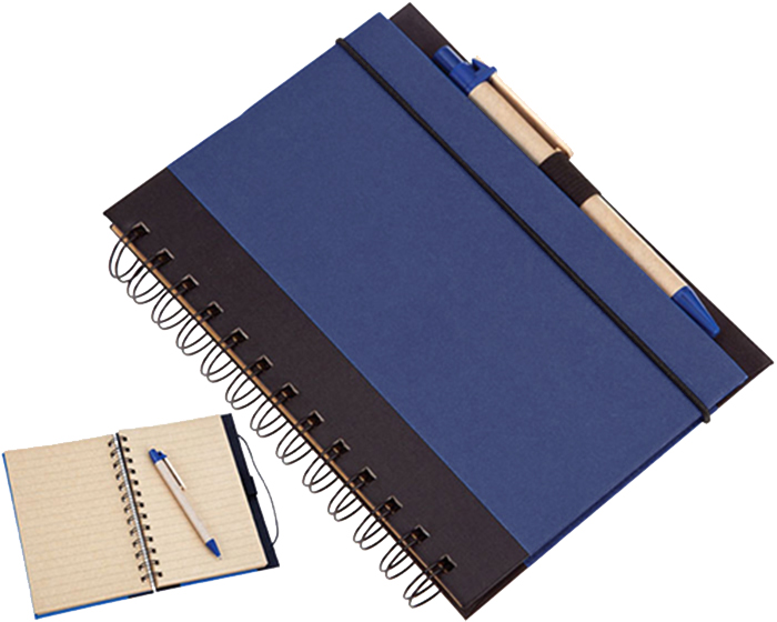 ISIS - Libreta ecológica de cartón reciclado con 70 hojas rayadas (140 páginas) y espiral metálica. Incluye bolígrafo de papel.