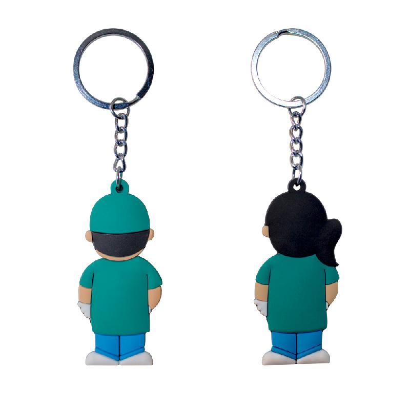 Llavero con forma de Doctor o Doctora. Medidas: 6.5 cm x 3.2 cm Material: Rubber Empaque: Bolsa de plástico.
