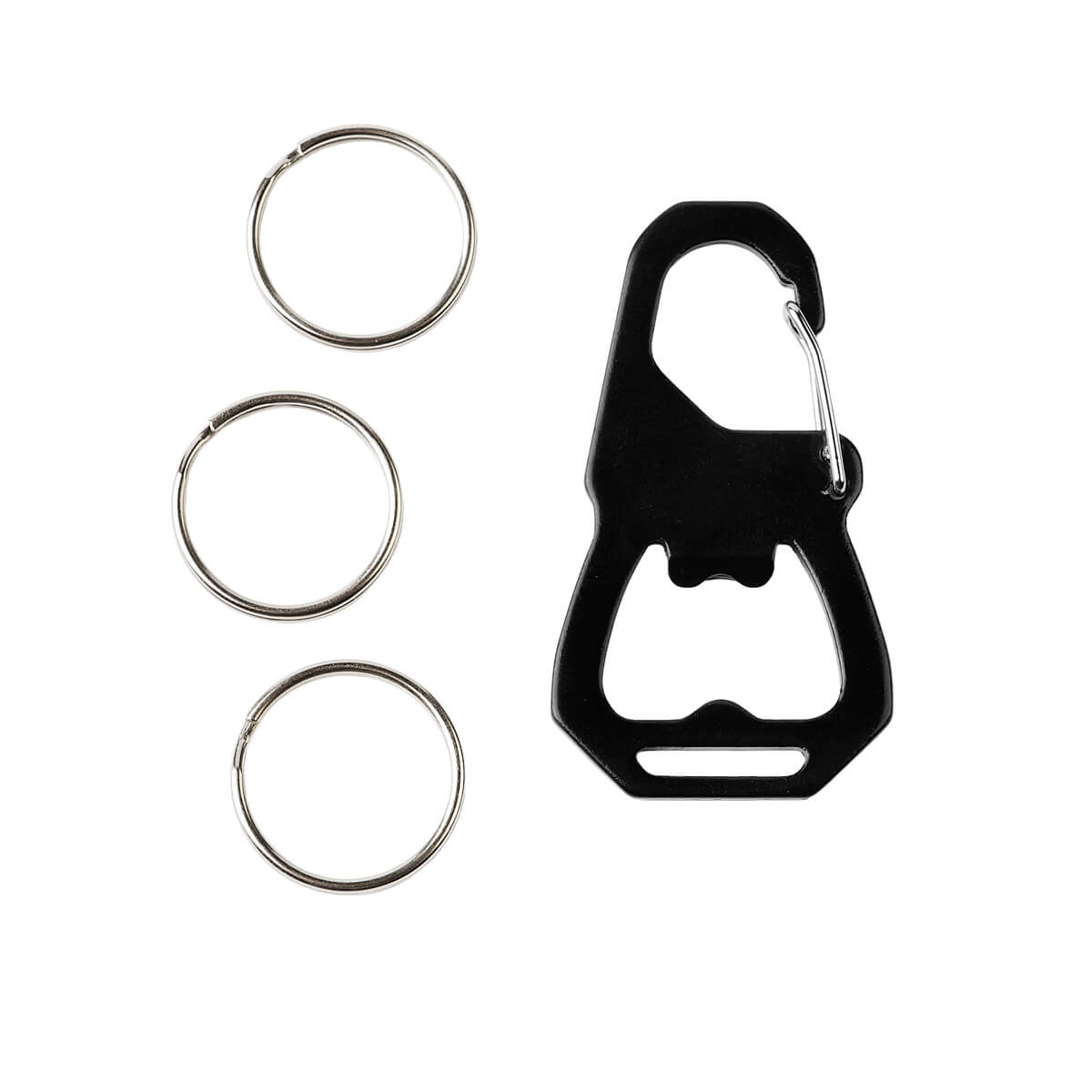 LLAVERO KAGI - Llavero metálico multifunción con gancho, destapador y tres aros para llaves. Organiza y transporta tus llaves con un accesorio práctico y de uso diario.