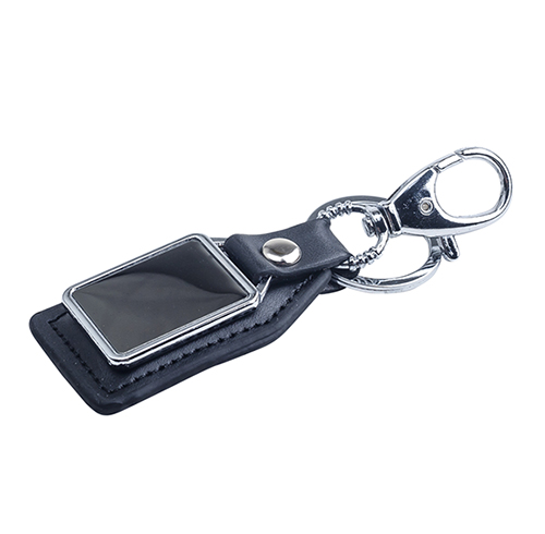 DRAKO Llavero metálico de curpiel con orillas bordadas, placa metálica, aro reforzado y broche para mayor sujeción.