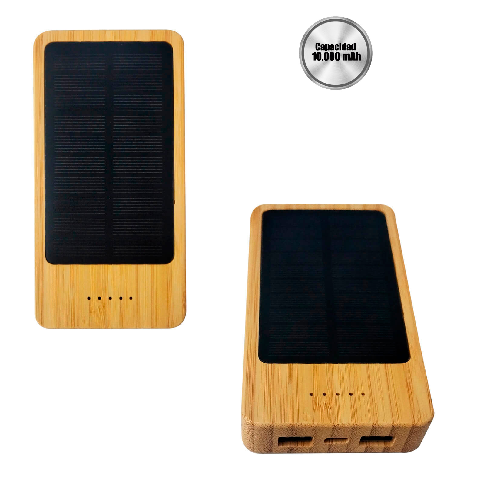 SONNE Power Bank de bambú de 10,000 mAh de carga solar, indicador de carga, dos entradas USB y una Tipo C.