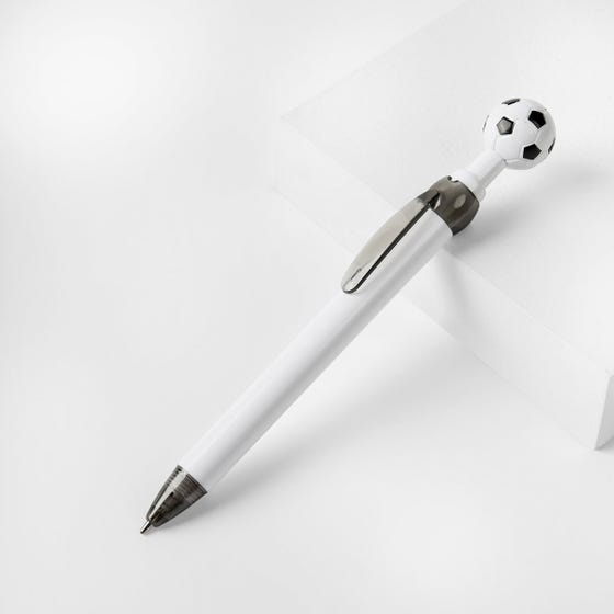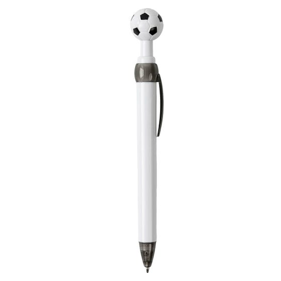 BOLÍGRAFO SOCCER - Bolígrafo con diseño deportivo, ideal para los amantes del fútbol. Cuenta con un adorno en forma de balón en la parte superior, mecanismo pulsador.