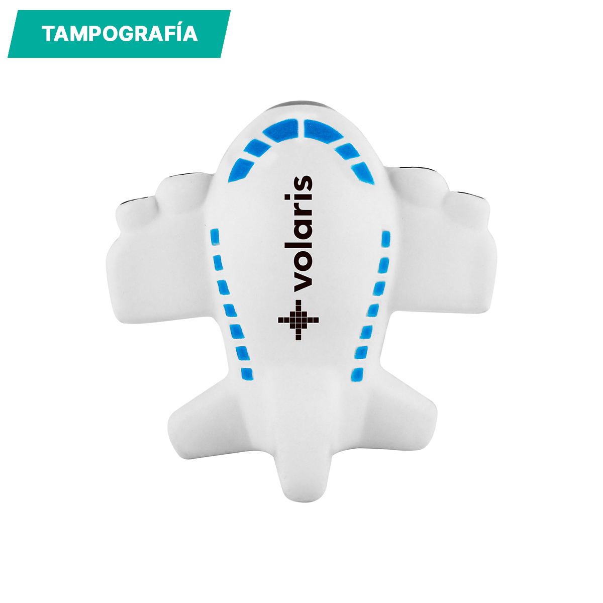 Avión antiestrés. - Avión antiestrés fabricado en poliuretano, con detalles en color azul, gris y negro, es una figura diseñada para aliviar el estrés y la tensión.