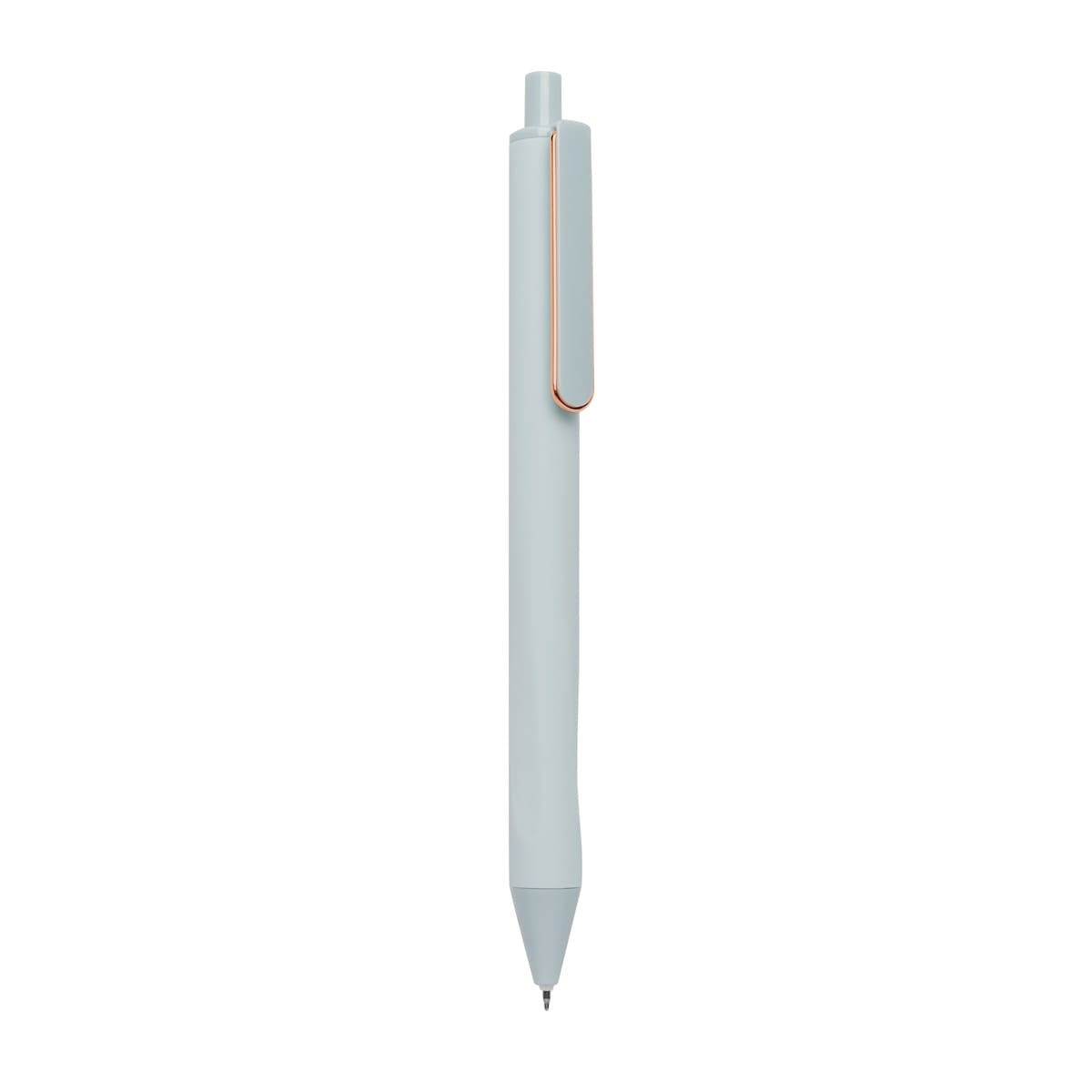 BOLÍGRAFO GRAMA - Bolígrafo con terminado tipo rubber. Mecanismo pulsador. Su diseño inferior permite un mejor agarre.