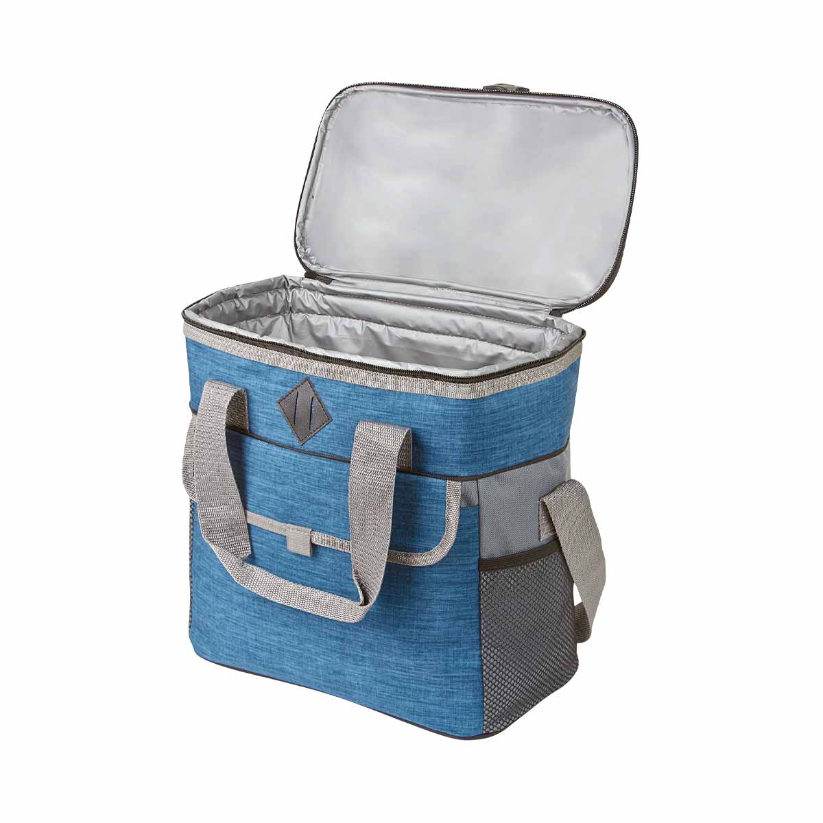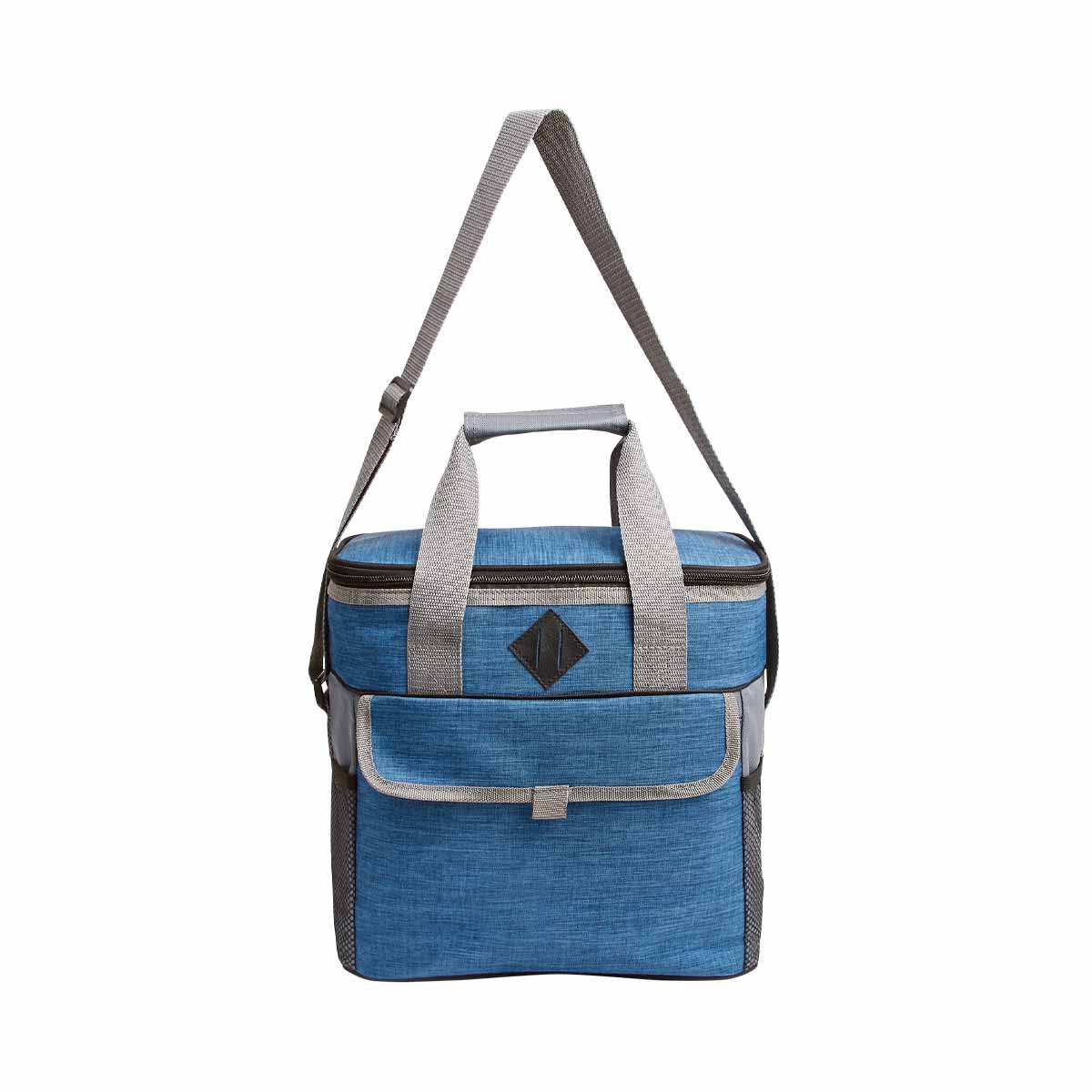 HIELERA KIEL - Interior plastificado impermeable. Bolsa principal con cierre, bolsa frontal con velcro. 2 Bolsas laterales de red y 2 asas superiores para agarre. Capacidad para 12 latas.