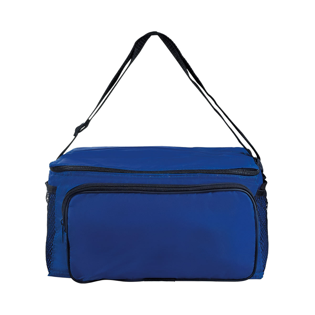 HIELERA 2 SIX - Interior metalizado plastificado e impermeable. Bolsa principal y frontal con cierre. Bolsas laterales de red. Incluye correa ajustable. Capacidad para 12 latas.