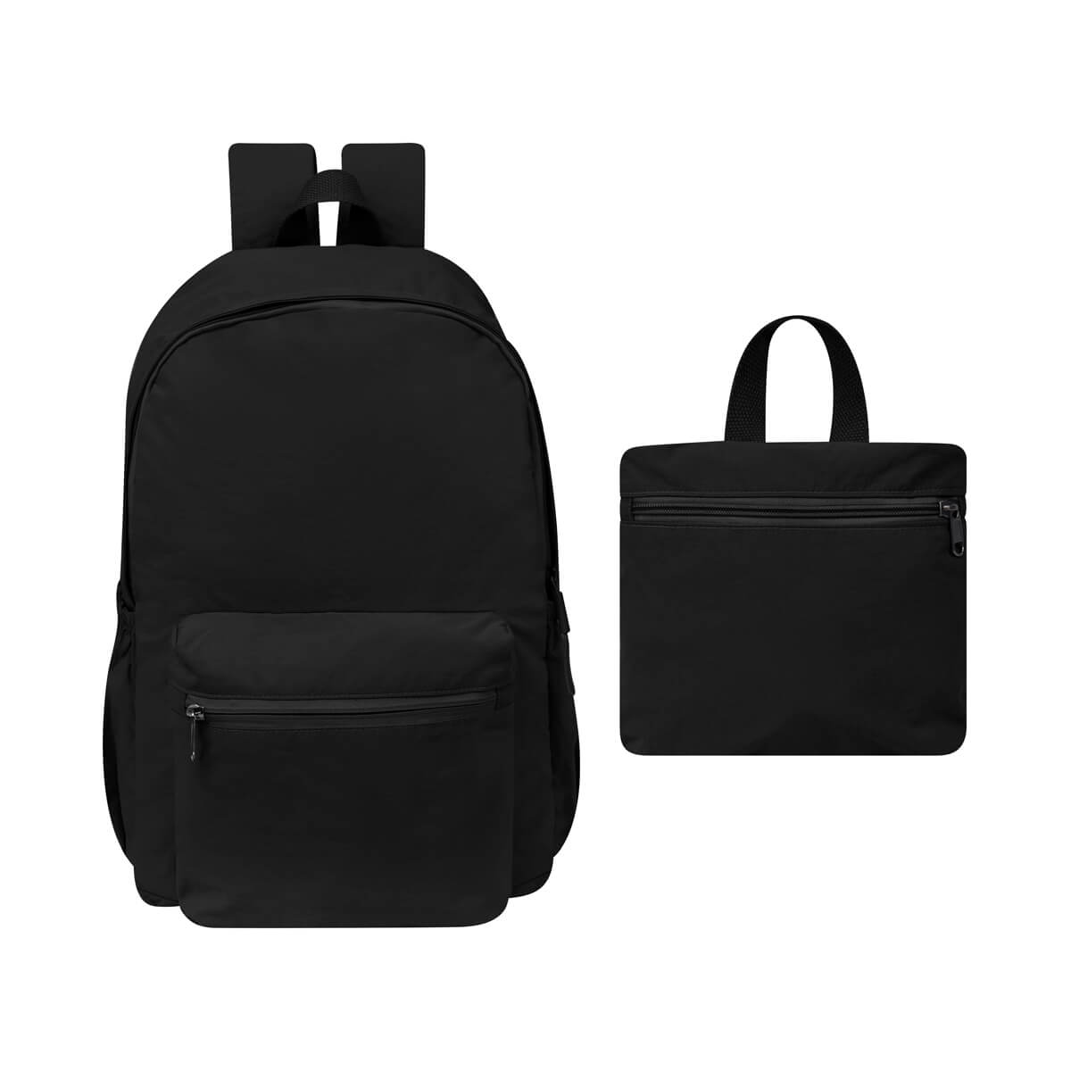 MOCHILA ALUS - Mochila mágica con diseño multifuncional. Su bolsillo frontal te permite plegar toda la mochila, haciéndola compacta y fácil de guardar. Fabricada en nylon texturizado y suave al tacto. Cuenta con un compartimento principal con cierre, bolsillo interno y 2 bolsillos laterales con elástico. Incluye asa superior para transportar en mano y asas acolchadas con correas ajustables para mayor comodidad.