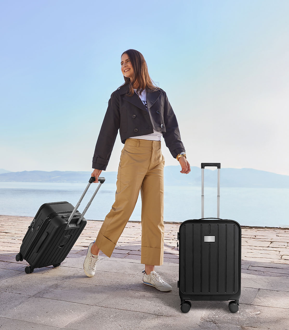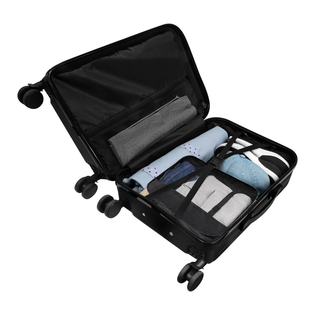 MALETA VIAGGIO - Maleta carry-on con dimensiones aprobadas para cabina. Ideal para viajes cortos o de negocios. Compartimento frontal para lap top que permite un fácil acceso, sin necesidad de abrir toda la maleta. Su innovador diseño, Incluye un porta bebidas plegable en la parte trasera y un práctico gancho portabolsas en la parte lateral, ideal para las compras de último momento. Cuenta también con un soporte para smartphone integrado en el asa del trolley, para un práctico manejo de dispositivos portátiles. Incluye candado de combinación para mayor seguridad. Cuenta con cuatro ruedas de giro suave y asa trolley retráctil con dos niveles ajustables, que facilitan su adecuada movilización.