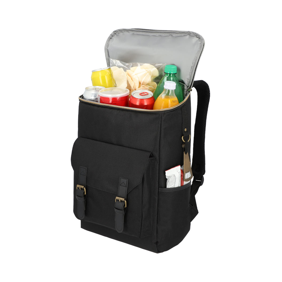 MOCHILA-HIELERA PAIA - Interior plastificado. Compartimento interior removible impermeable. Bolsa principal, bolsa frontal y 2 bolsillos laterales. Broches frontales de hebilla metálica. Incluye destapador metálico. Capacidad para 24 latas.
