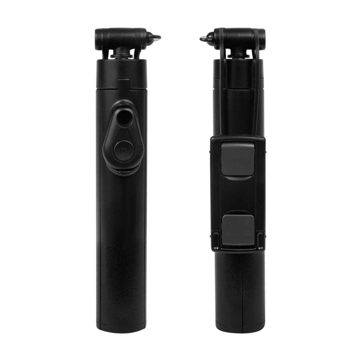 SELFIE STICK SURAT - Selfie stick con tripié amplio para mayor estabilidad. Incluye control remoto Bluetooth con alcance de hasta 10 m, ideal para capturar fotos o videos a distancia. Su brazo extensible de 86 cm y su holder ajustable garantizan ángulos perfectos para cada toma. Perfecto para selfies, videollamadas o grabaciones creativas. El control remoto funciona con batería de botón (incluída).