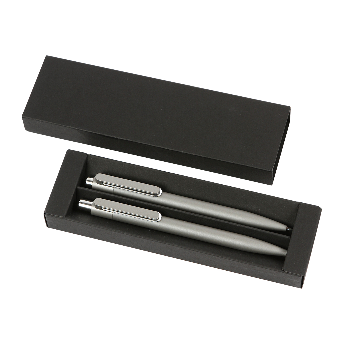 Set de bolígrafos Norwhich. - Juego de bolígrafo con tinta negra y lápiz tipo bolígrafo con punta infinita, ambos fabricados en aluminio. Elegante set de escritura que incluye una caja de presentación en papel negro. Estilo e innovación en un solo paquete.