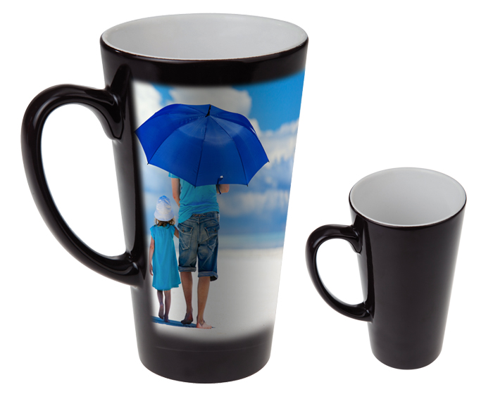 GIPSY - Taza mágica cónica de sublimación. El diseño aparece al servir agua caliente. CAP. 415 ml. (14 OZ). Temperatura y Tiempo sugeridos para sublimar: 190 grados / 120 seg. Venta en múltiplos de 12.