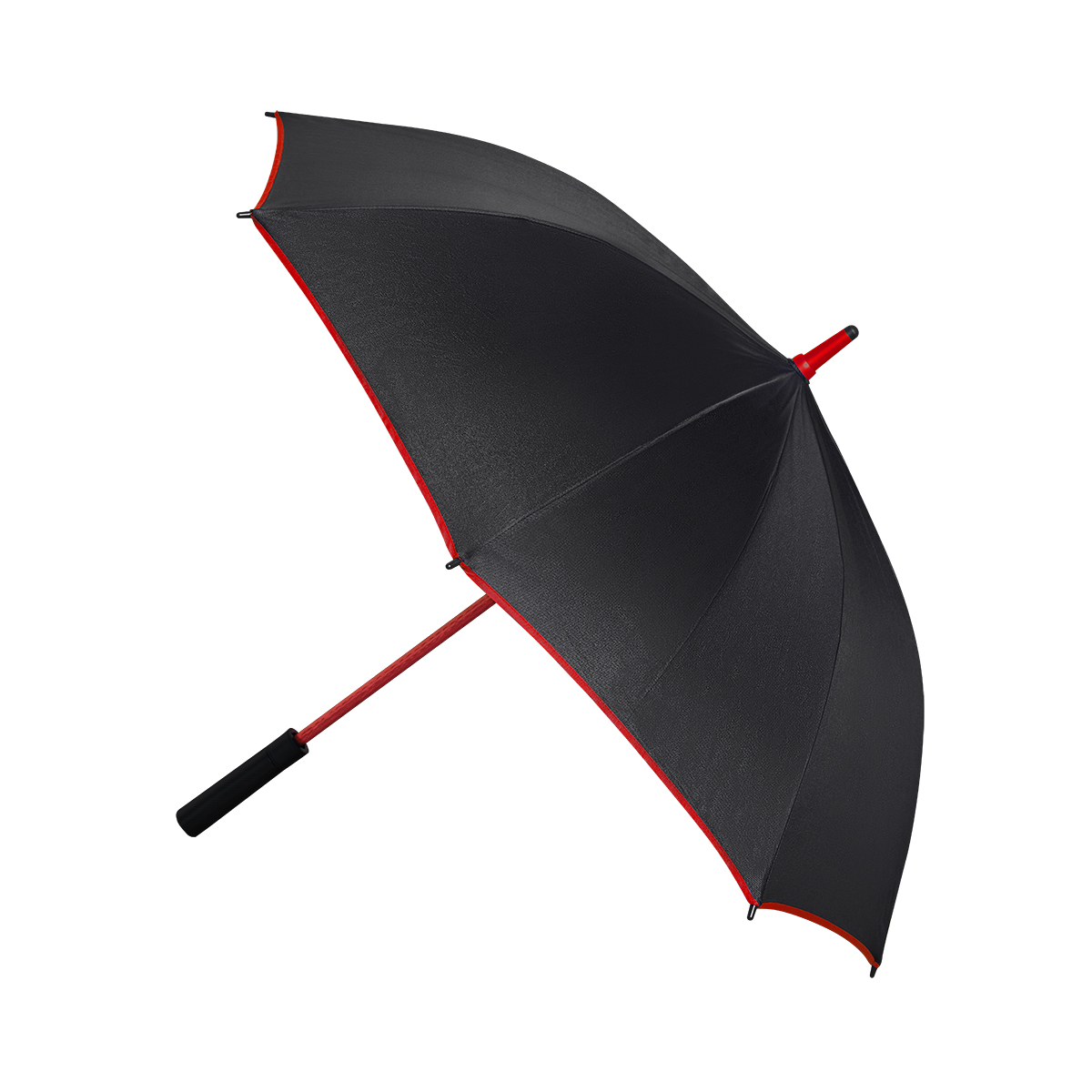 PARAGUAS SUMMER - Automático. 8 Paneles y mango de plástico. Marco de fibra de vidrio y bies de color que hacen juego con el marco y el mango. Incluye funda con agarradera.