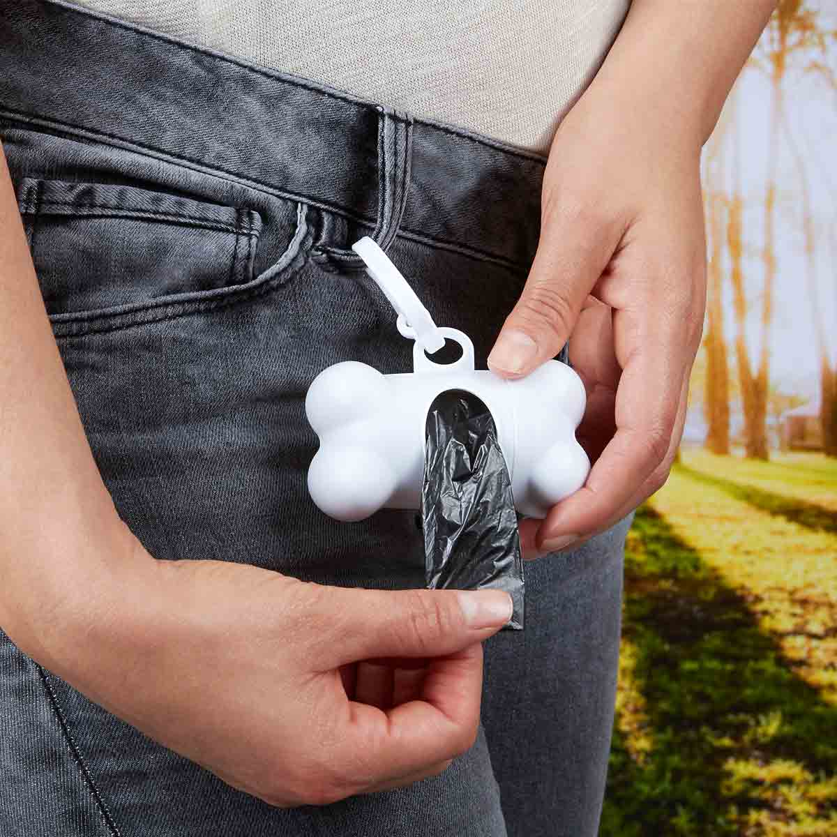 DISPENSADOR BONE - Incluye rollo con 20 bolsas de plástico, gancho para sujetar y tapadera por la parte lateral izquierda.