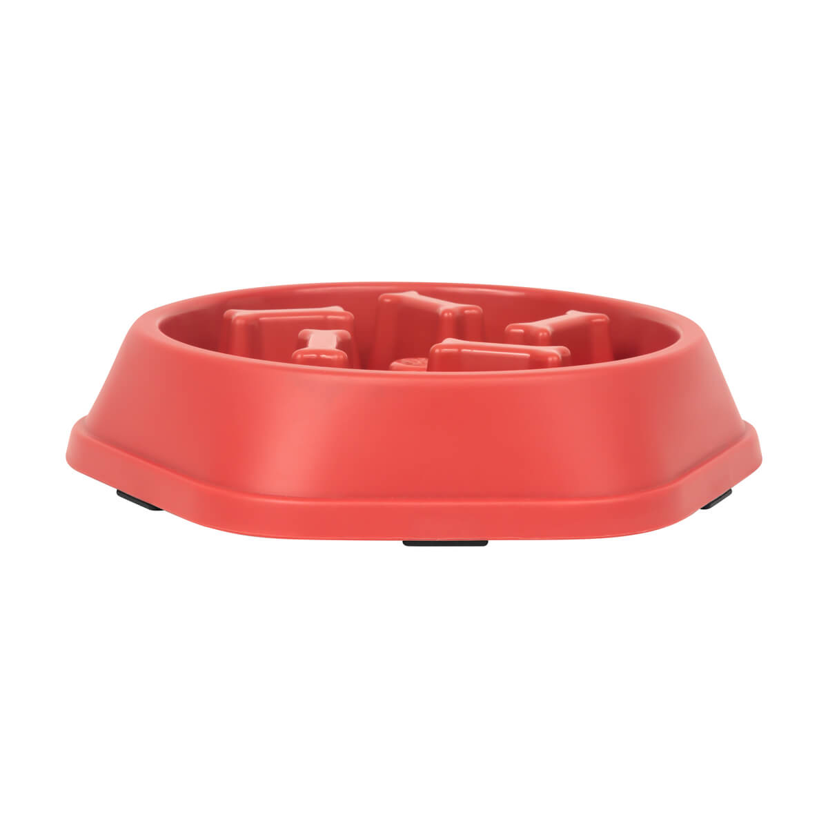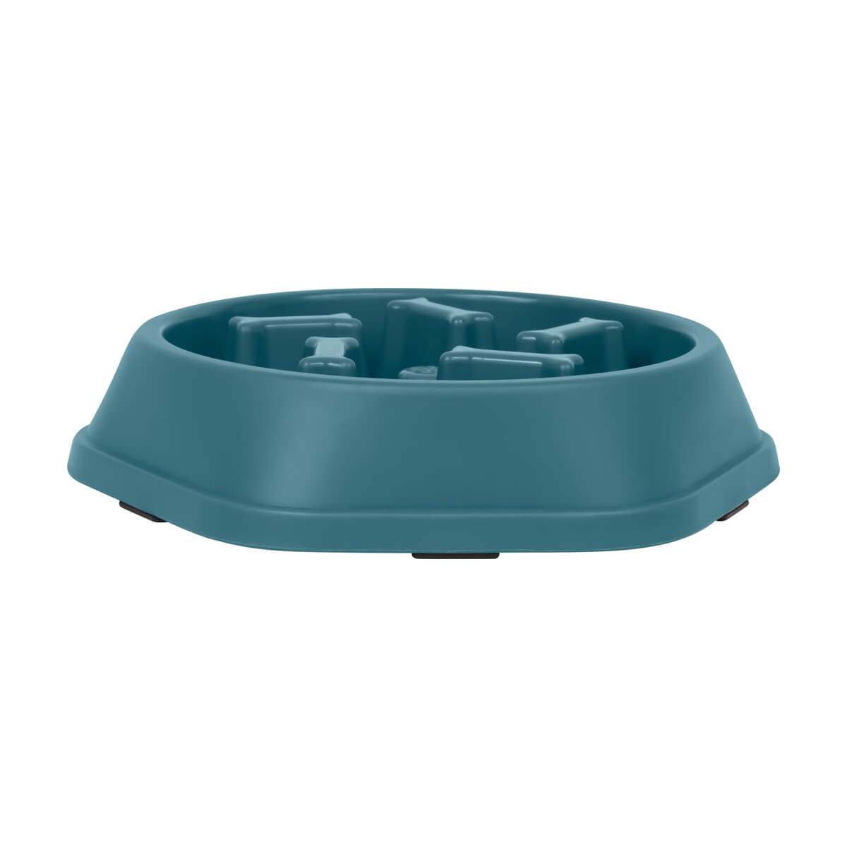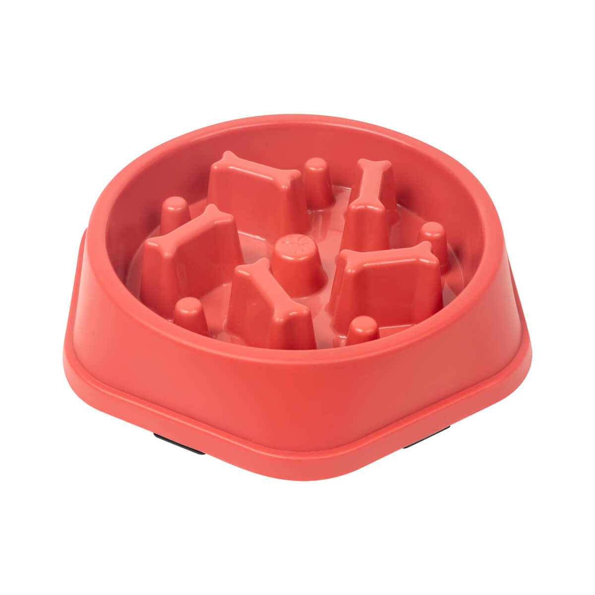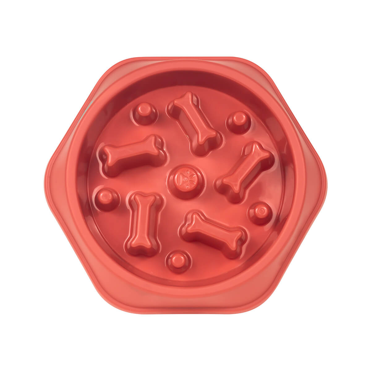 PLATO OSSIS - Plato de alimentación lenta para mascotas, fabricado en plástico de grado alimenticio. Ideal para perros pequeños y medianos. Su diseño interior con figuras de hueso ayuda a reducir la velocidad al comer, favoreciendo una digestión saludable. Su base cuenta con seis almohadillas antideslizantes, que evitan deslizamientos durante su uso.