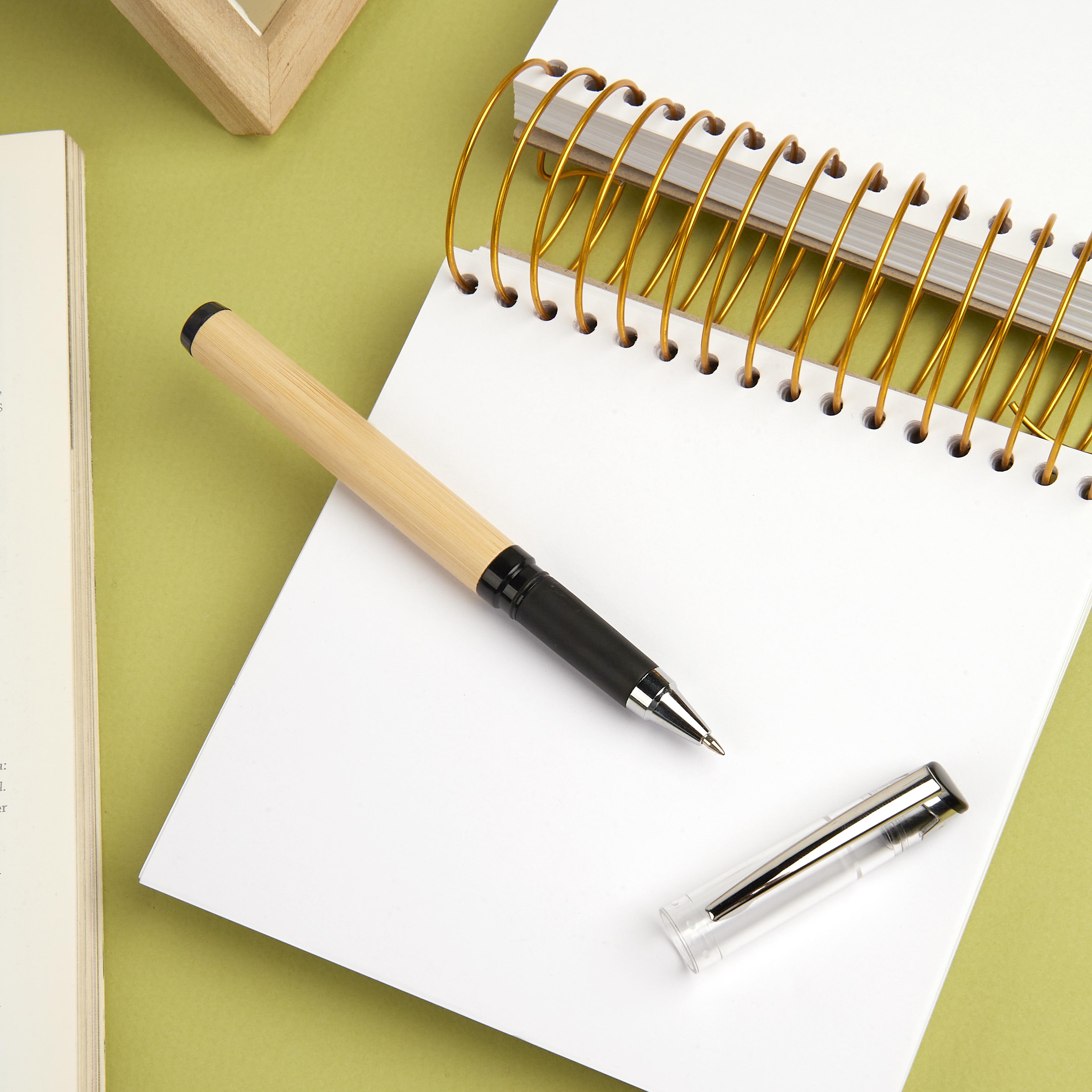 WANZI Bolígrafo de bambú con clip y mecanismo de click....