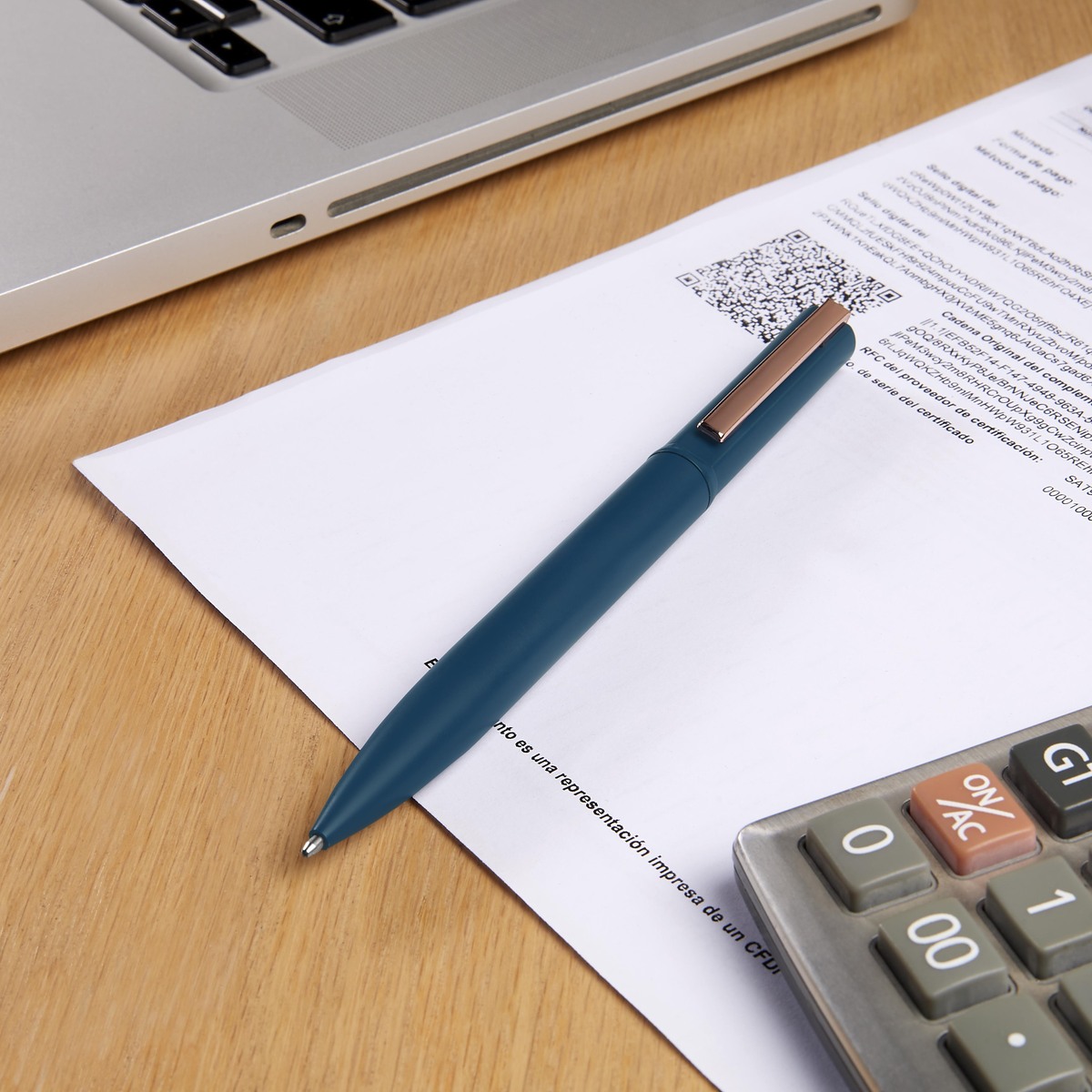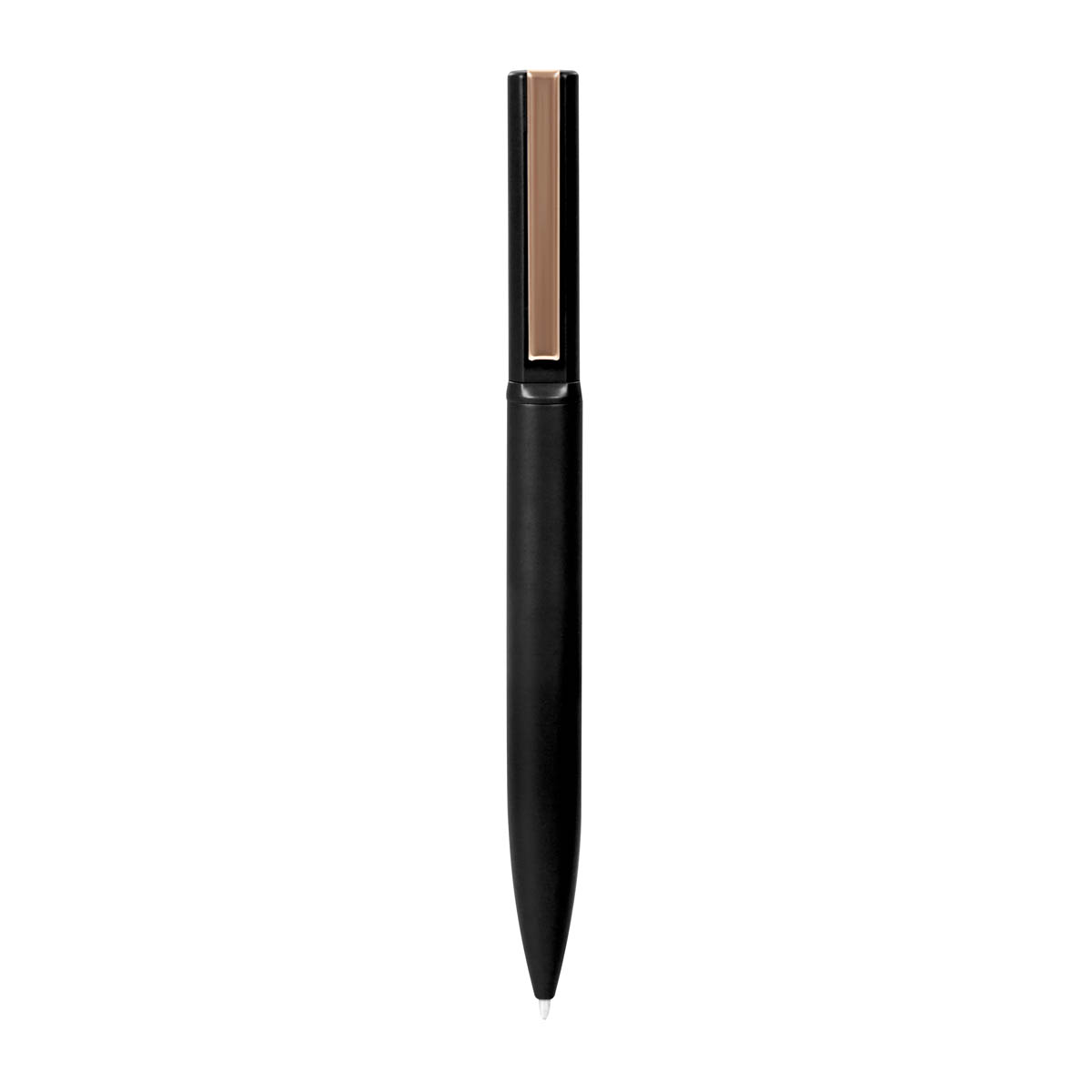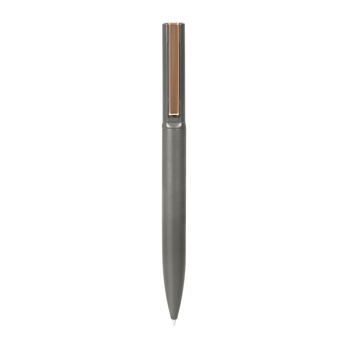 BOLÍGRAFO GILMORE - Bolígrafo metálico con terminado mate y clip rose gold. Mecanismo twist. Incluye estuche.