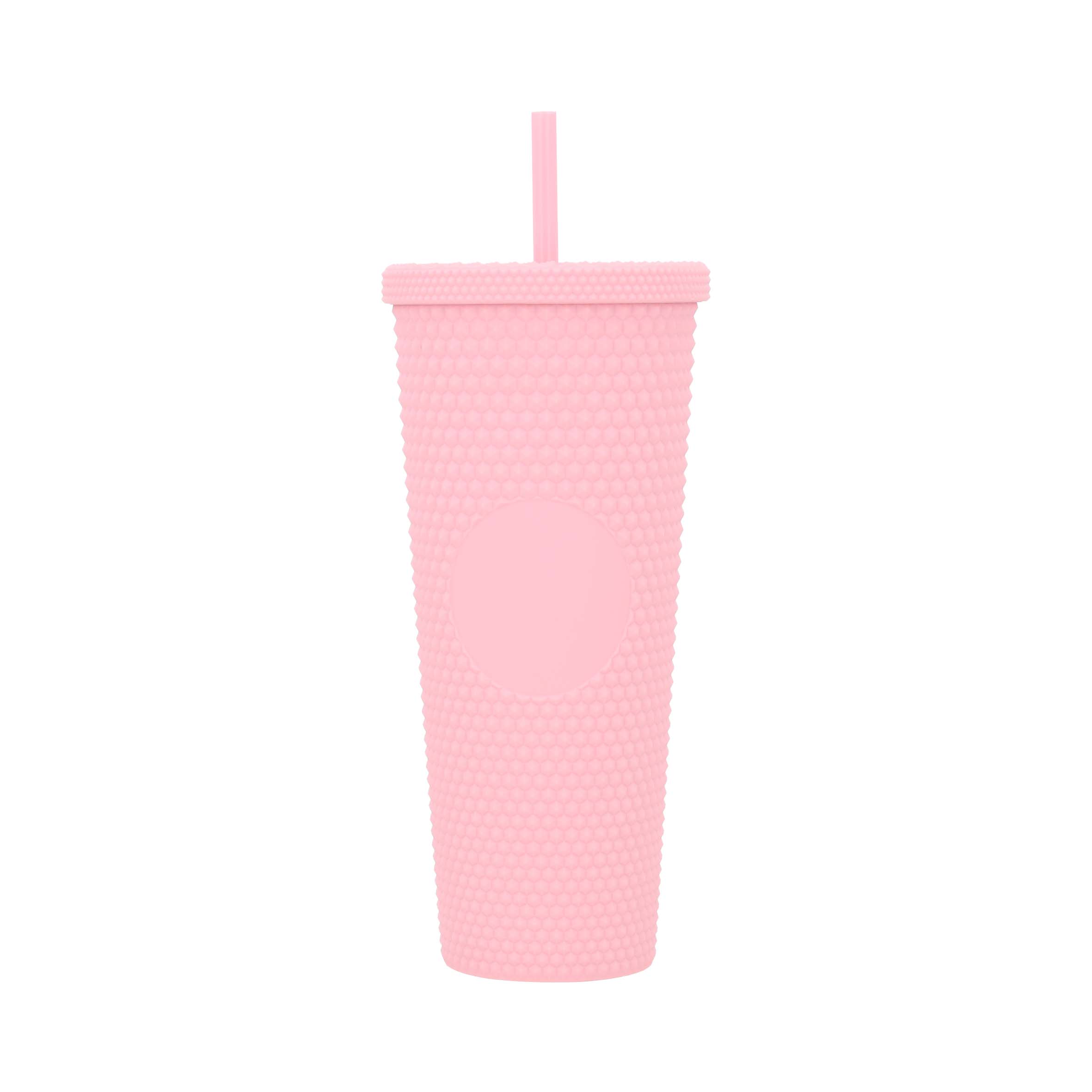 MATE Vaso con doble pared de plástico, textura, tapa enroscable y popote incluido.