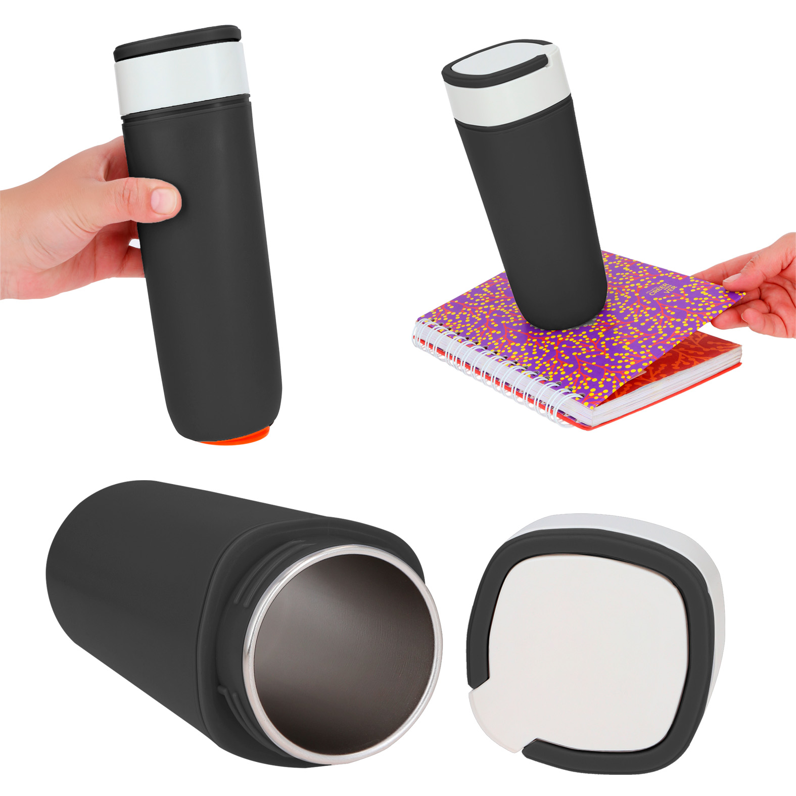 CUBE Termo de doble pared con exterior de plástico e interior de acero inoxidable. Incluye tapa enroscable con asa.