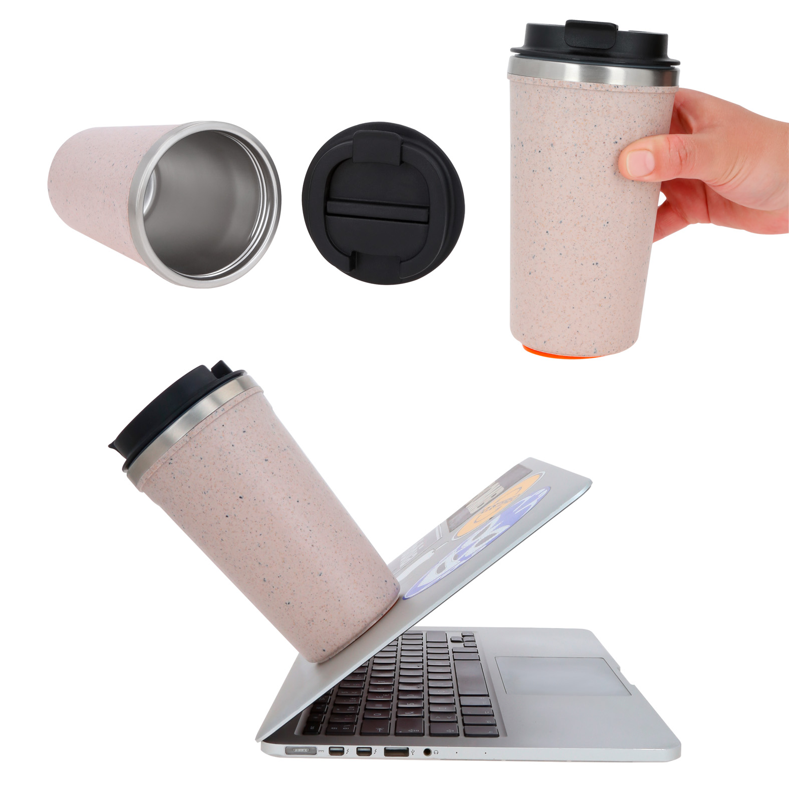 BEAN Termo de doble pared de acero inoxidable y exterior de plástico elaborado a base de granos de café reciclado con tapa plástica enroscable. Incluye en la parte inferior un chupón anti derrame.