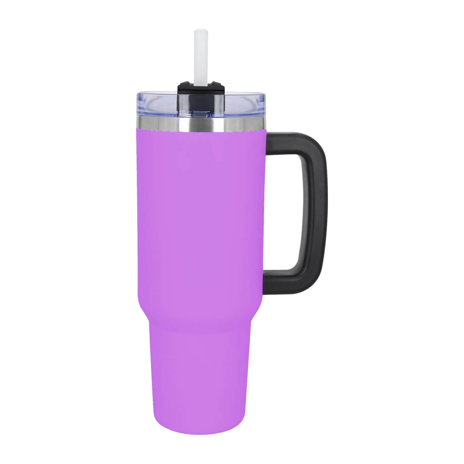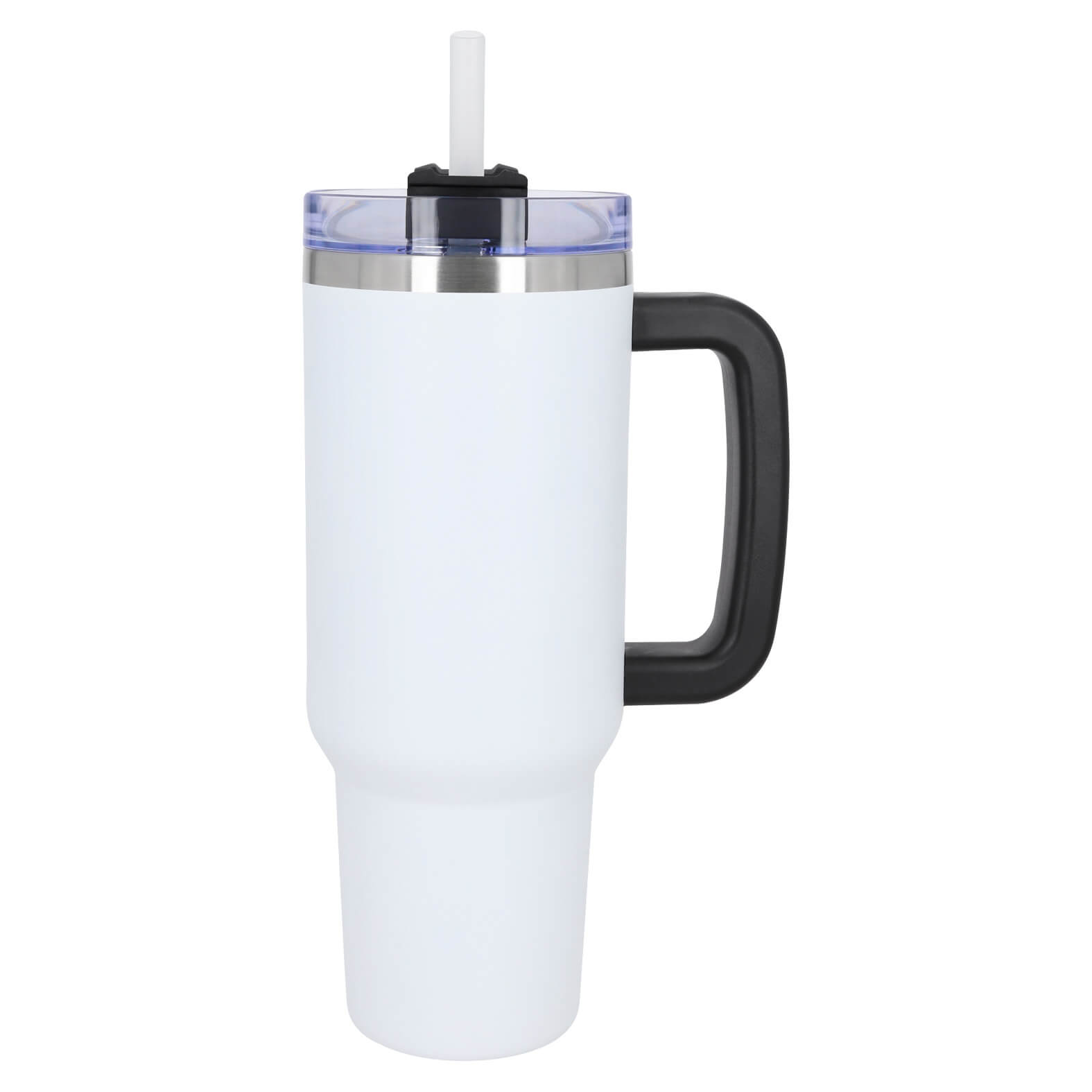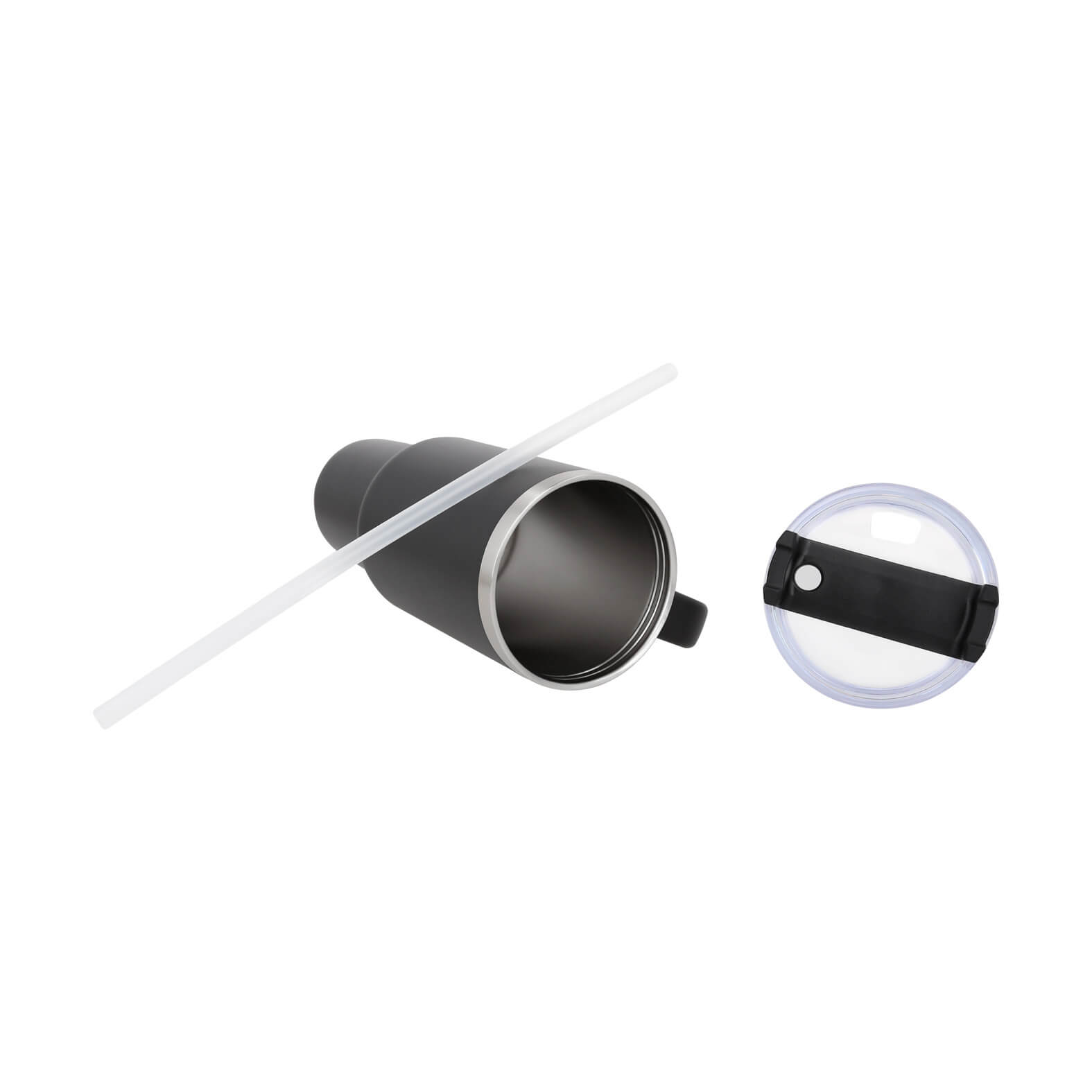 VIZ Termo con doble pared de acero inoxidable, insulado al vacío, acabado rugoso, con asa lateral y tapa enroscable con popote.