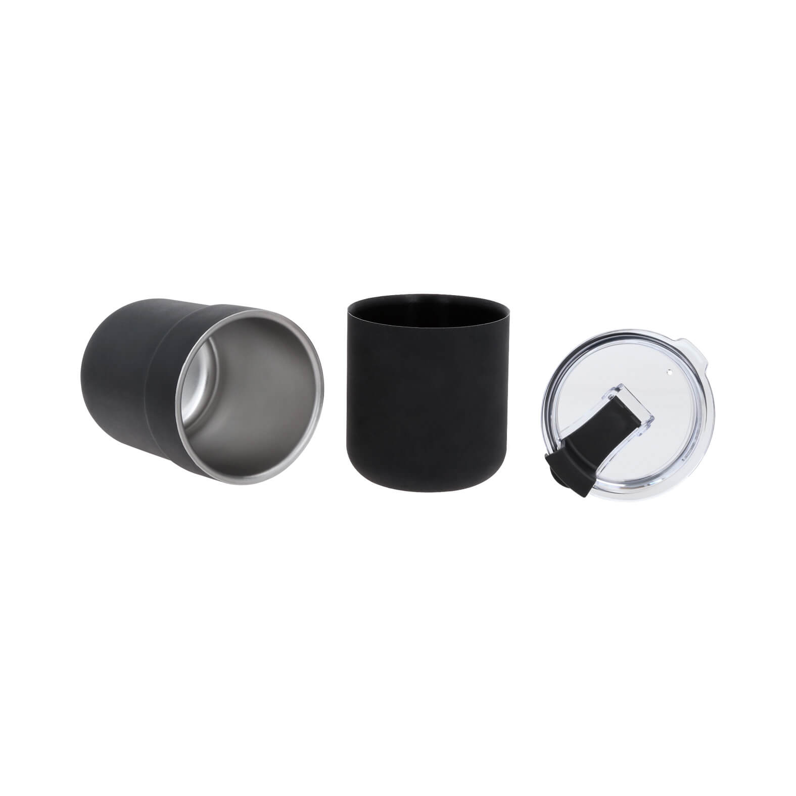 TIR Termo con doble pared de acero inoxidable, insulado al vacío, acabado rugoso, con manga de silicón y tapa de cierre a presión.