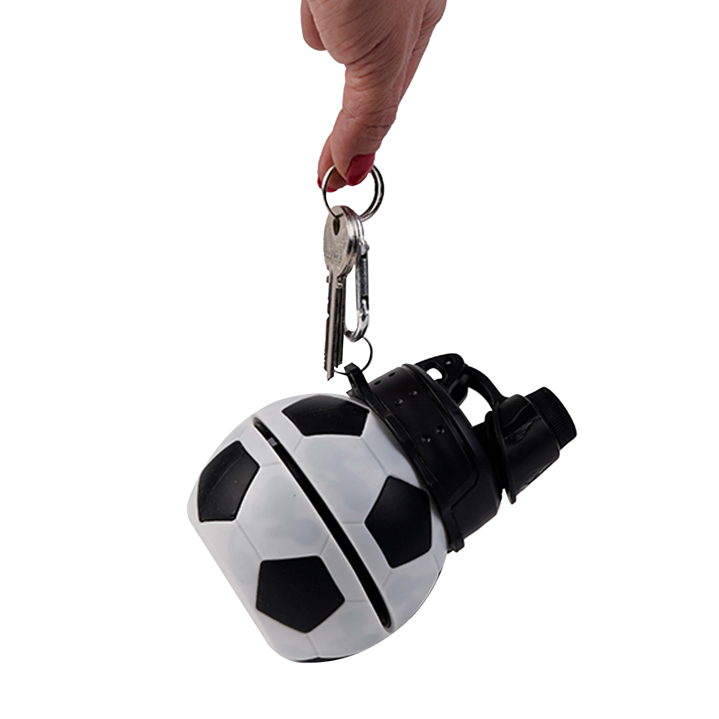 FEVER Cilindro de silicón con forma de balón de futbol que se extiende y contrae, cuenta con tapa enroscable, boquilla con tapa de seguridad en la parte superior y seguro para mejor sujeción.
