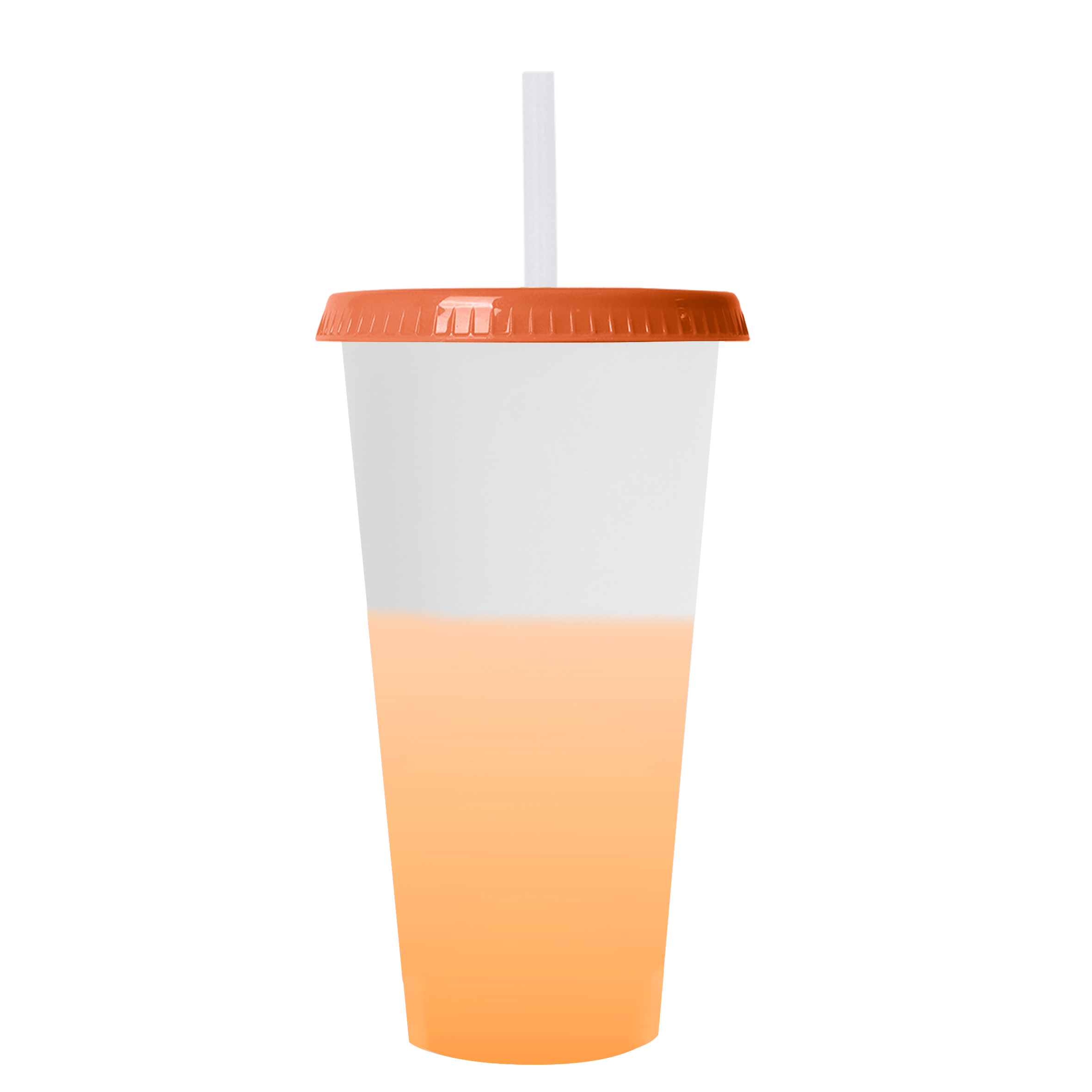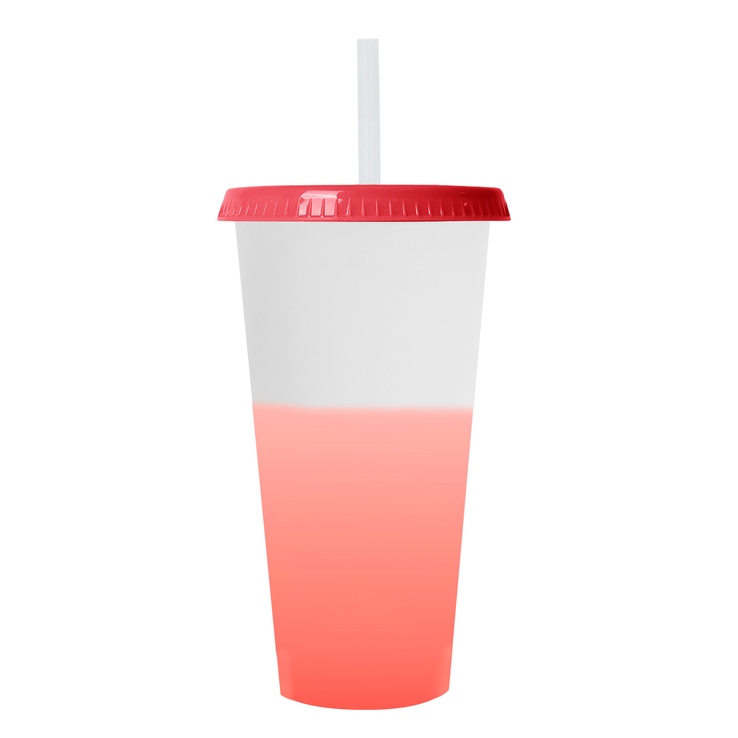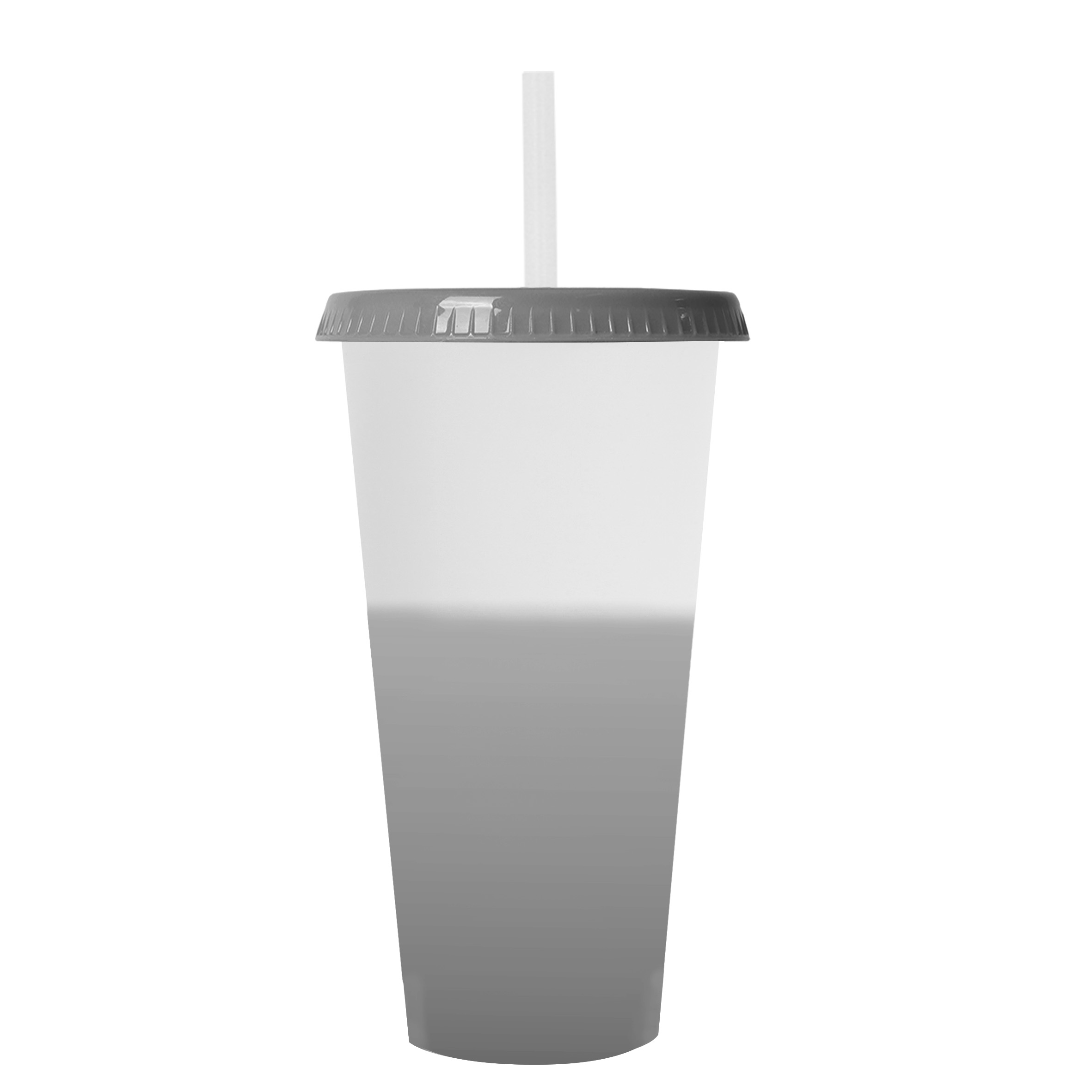 CROMATIC Vaso de plástico con acabado frost degradado y tapa solida. (Incluye popote).