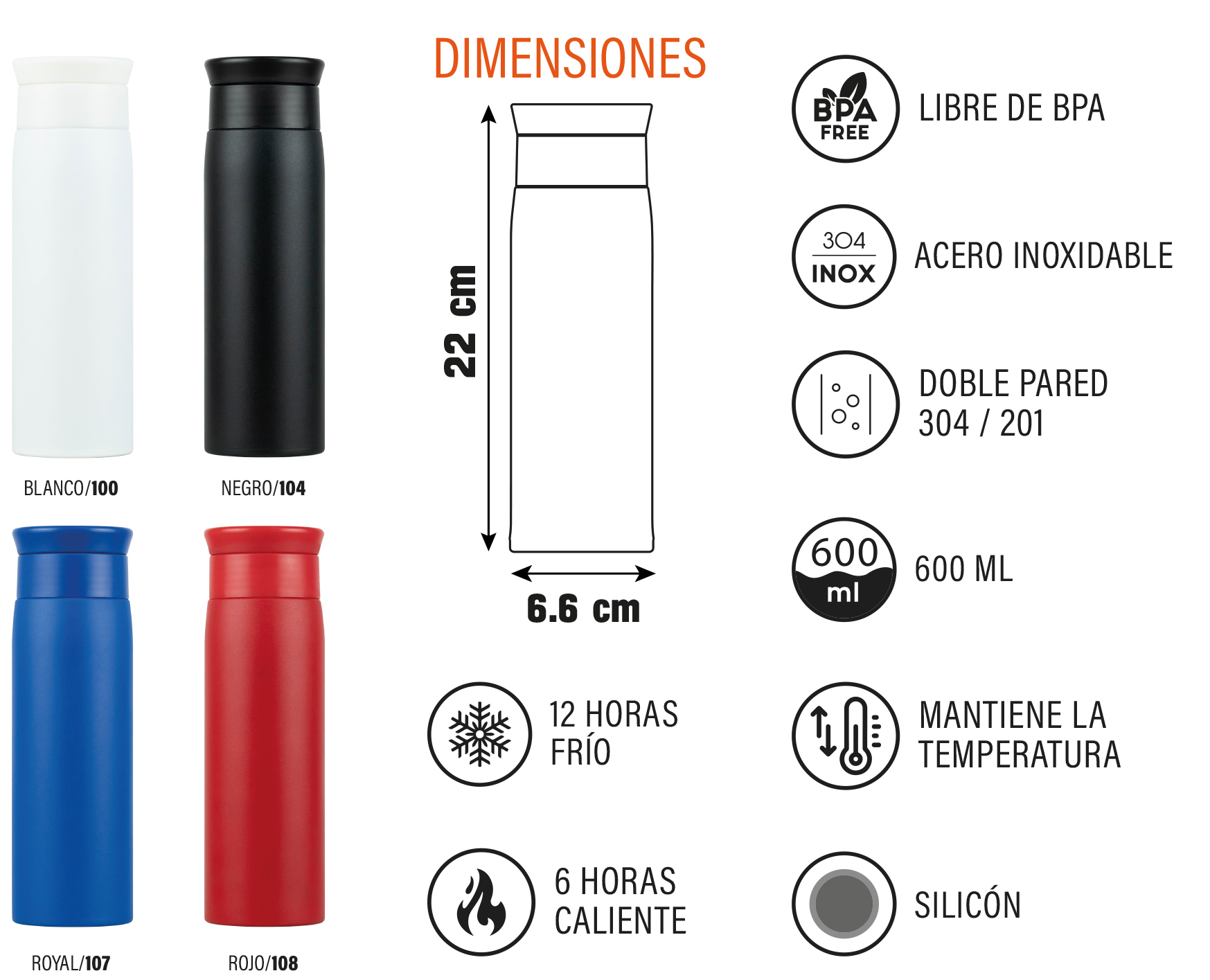 TERMO CHICAGO ROJO ACERO/PLASTICO CON TAPA AL TONO CON POPOTE Y SILICON...
