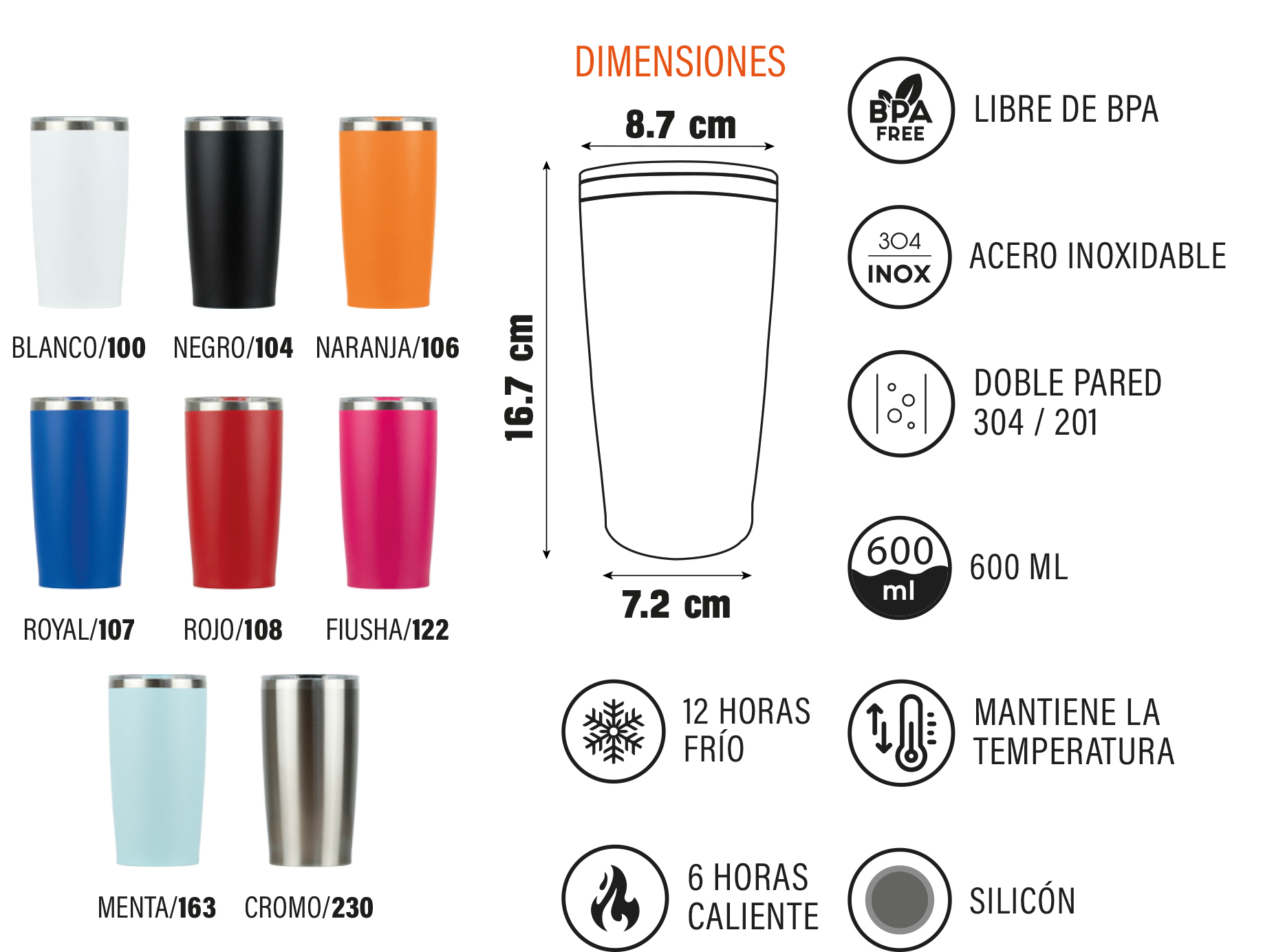Vaso Lumia. - Vaso de doble pared fabricado en acero inoxidable 304 y 201 con co...