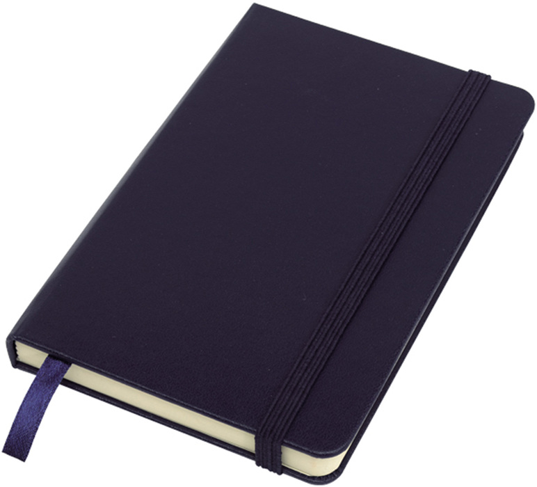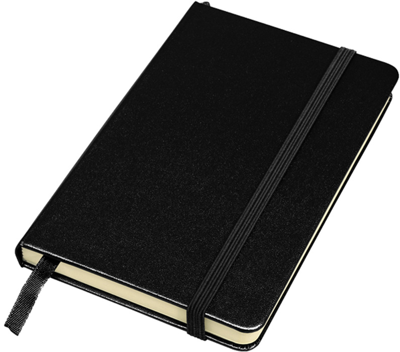 LIBRETA MEDIANA Separador de hojas en tela. Cierre con banda elástica. Sobre portapapeles en el interior de la pasta posterior.