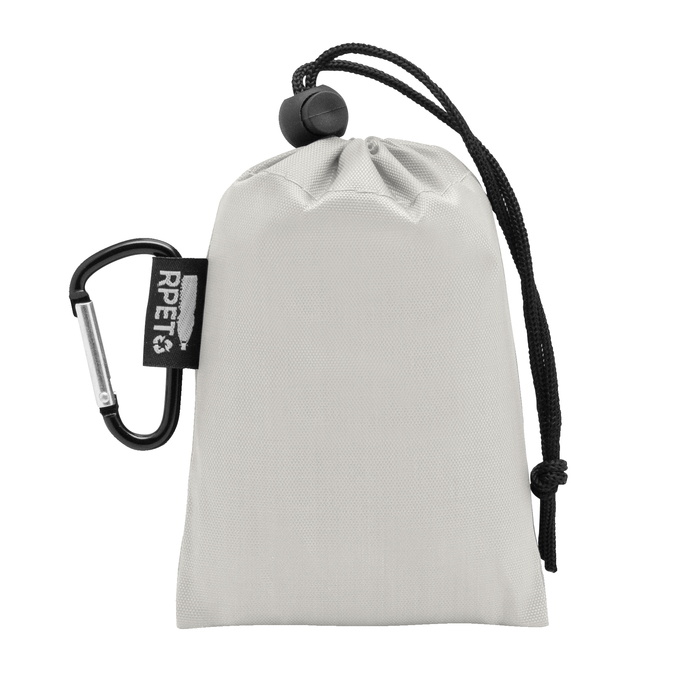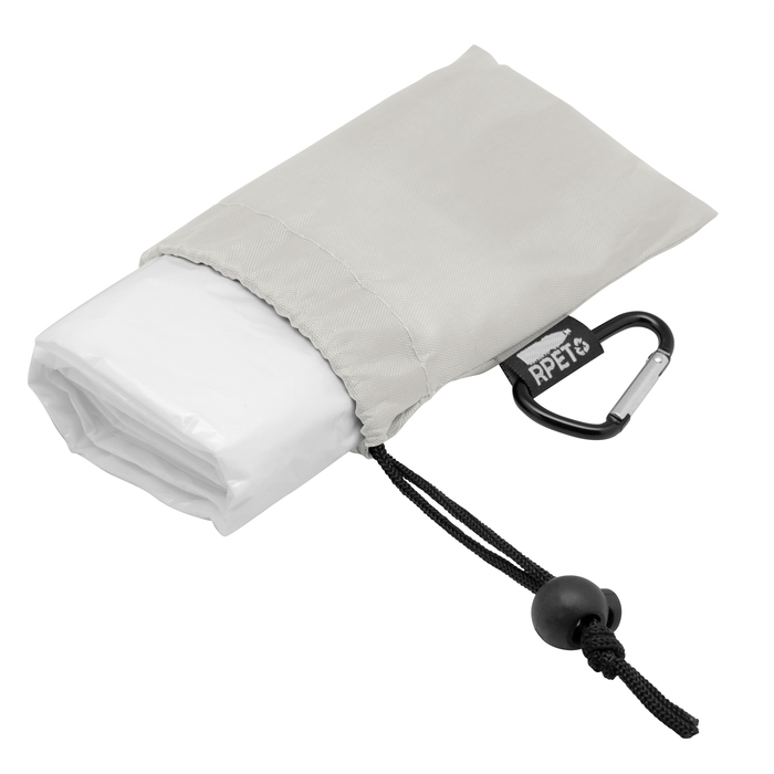 PONCHO IMPERMEABLE PARA LLUVIA "RAINY" Poncho impermeable. Presentación en bolsa de RPET de diferentes colores con cierre ajustable y mosquetón de aluminio color negro.